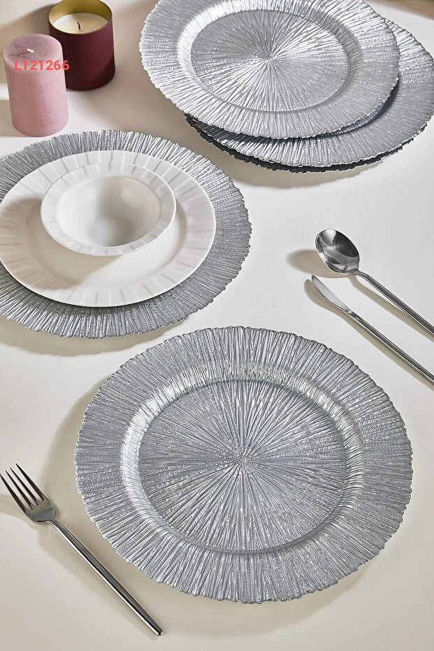 استمتع بمذاق الفخامة مع مجموعة لورا بيانكا الملكية من الأطباق الفضية الزجاجية! تتكون من 6 قطع بحجم 32 سم، تضيف لمسة راقية لأي مناسبة أو حفل عشاء. تصميمها الأنيق يجمع بين الجمال والعملية، مما يجعلها الخيار المثالي لتزيين مائدتك بأناقة لا تضاهى.