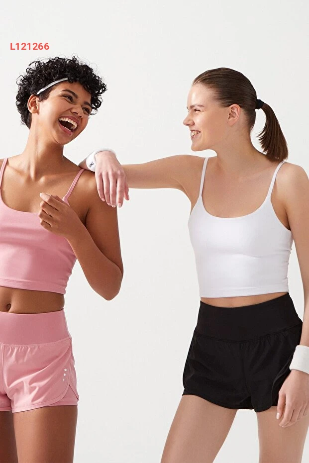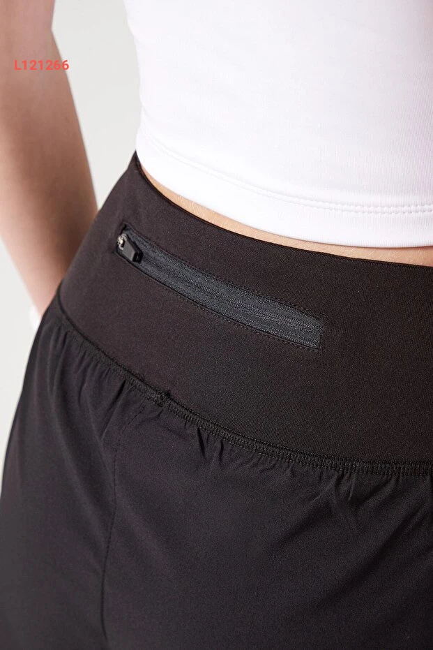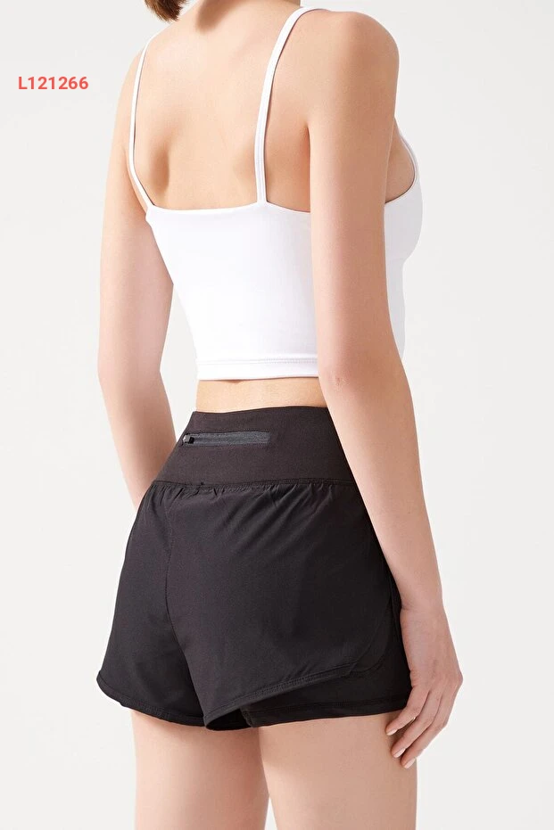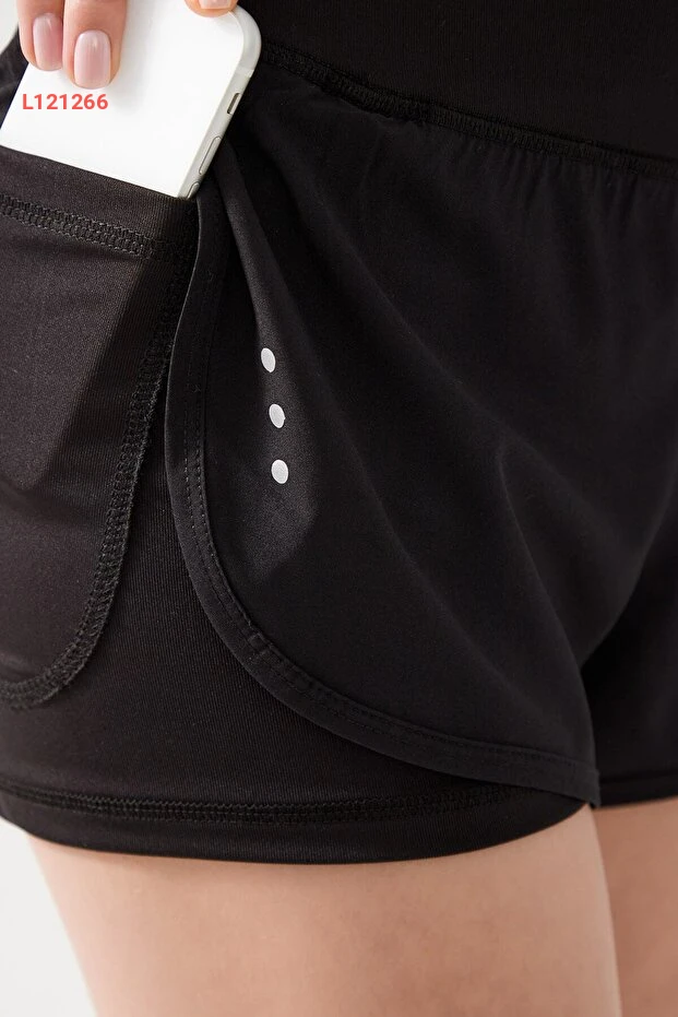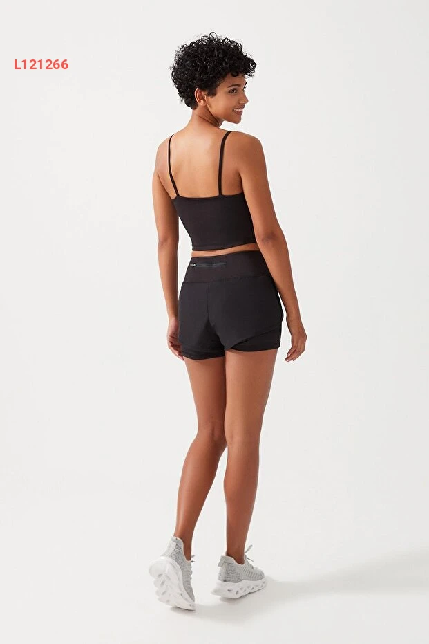 شورت رياضي نسائي أسود ذو طبقتين مع ليغينغ 2 في 1