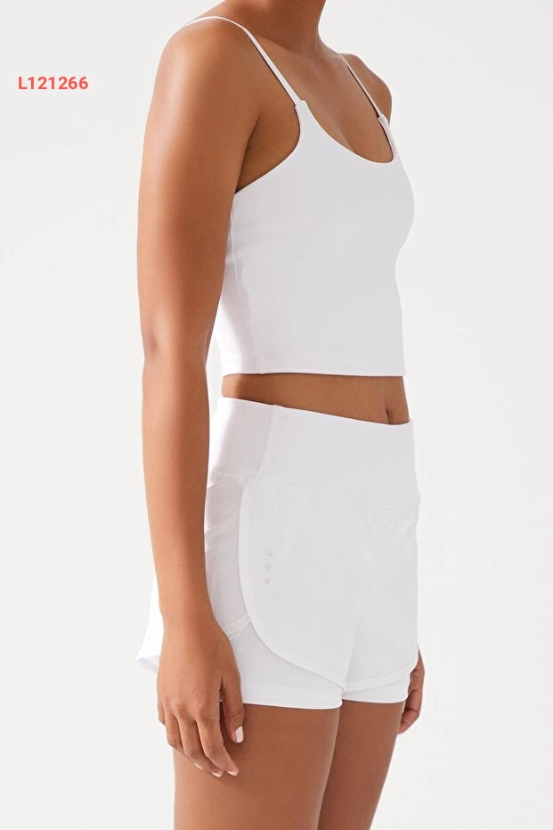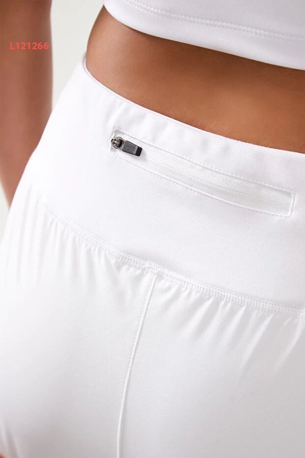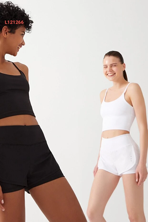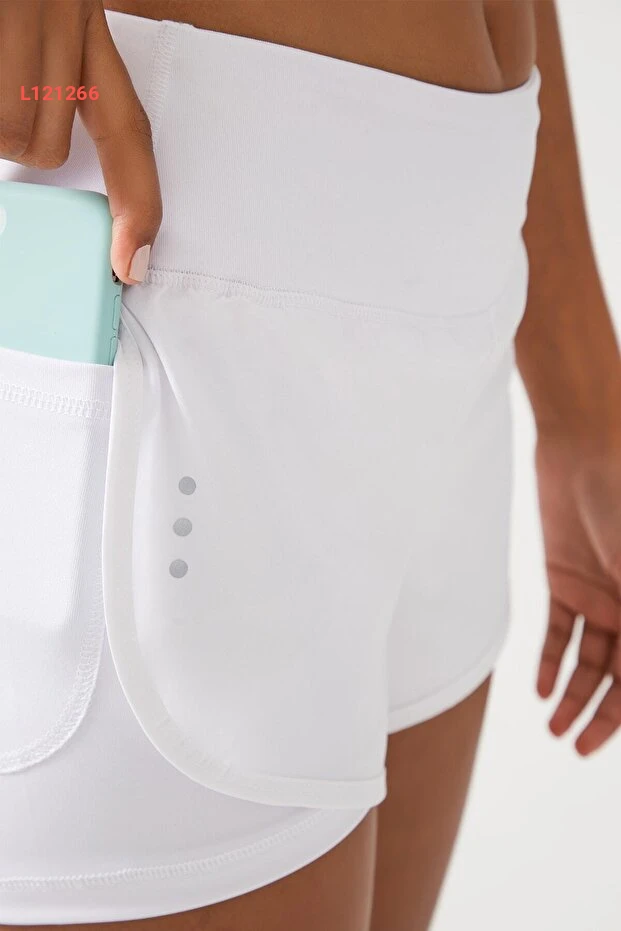 شورت رياضي نسائي أبيض مزدوج الطبقات - شورت مع ليجن 2 في 1