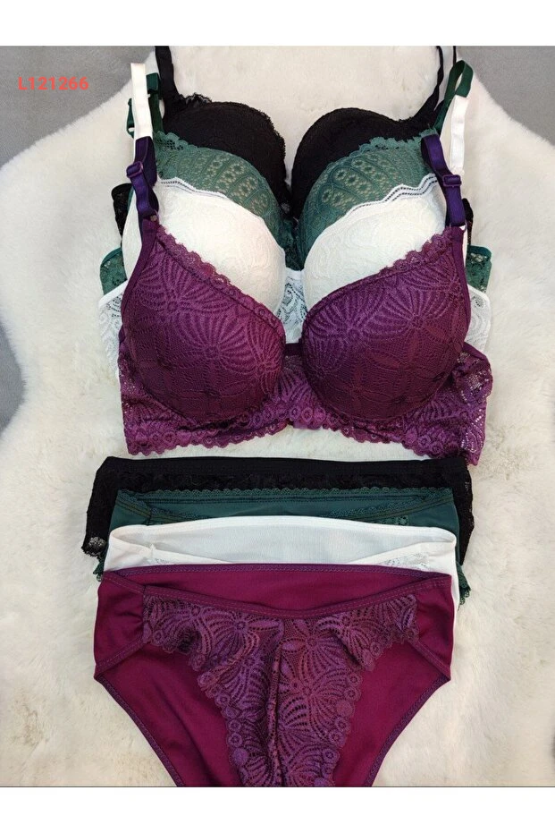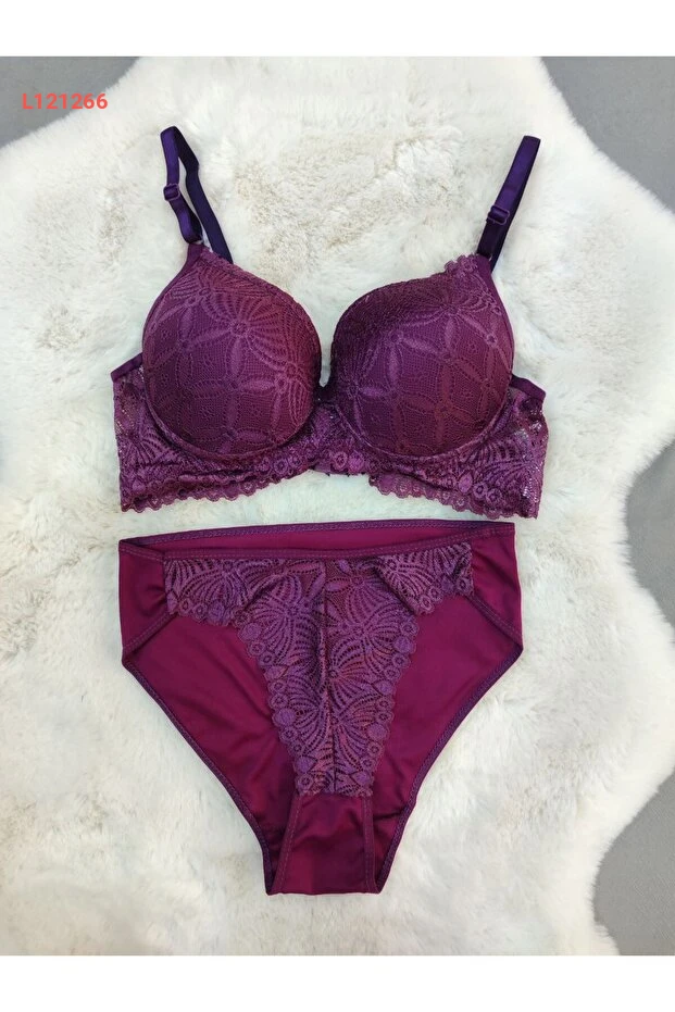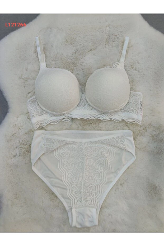 مجموعة لانجري أنجلز مع تفاصيل الدانتيل - طقم حمالة صدر وسروال محشو بتصميم جذاب
