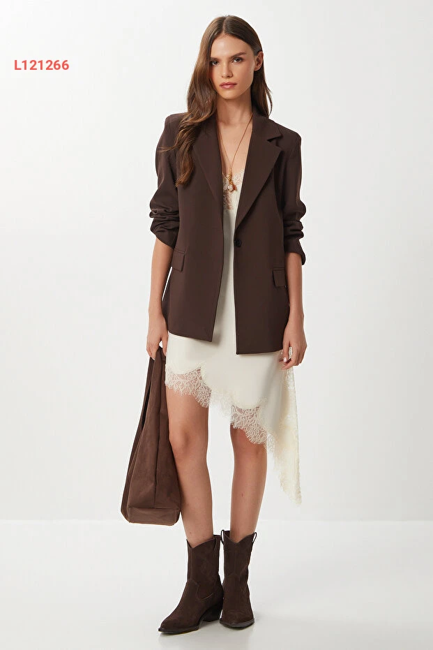 جاكيت بليزر مع بطانة من بوليفيكسير من لوفلي إسطنبول - بني