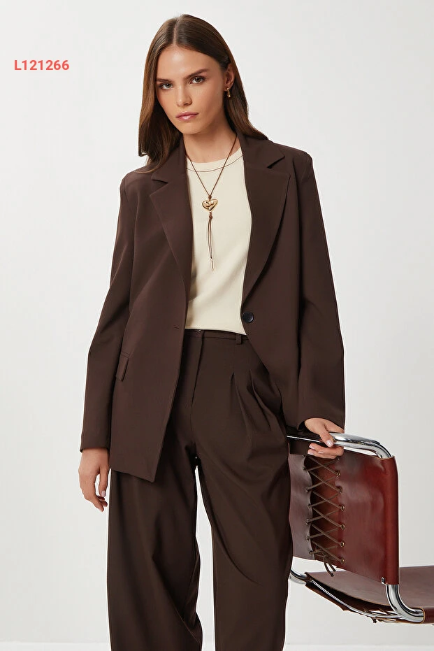 ارتقِ بإطلالتك مع جاكيت "Lovelyİstanbul Vatkalı Poliviskon" بلون البني الأنيق. مصنوعة من تكنولوجيا البولي فيسكون الفاخرة، توفر لك الراحة والمرونة في كل حركة، بينما تضيف الوسادات المدمجة لمسة من الأناقة والجاذبية. مثالي للمناسبات الرسمية أو لإطلالة عصرية في قولبي حياتك اليومية.