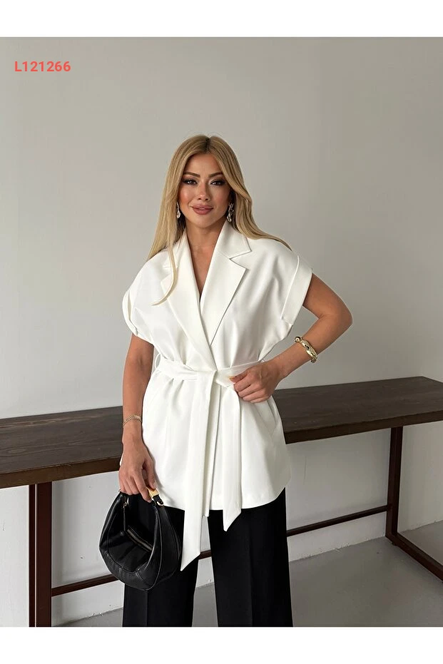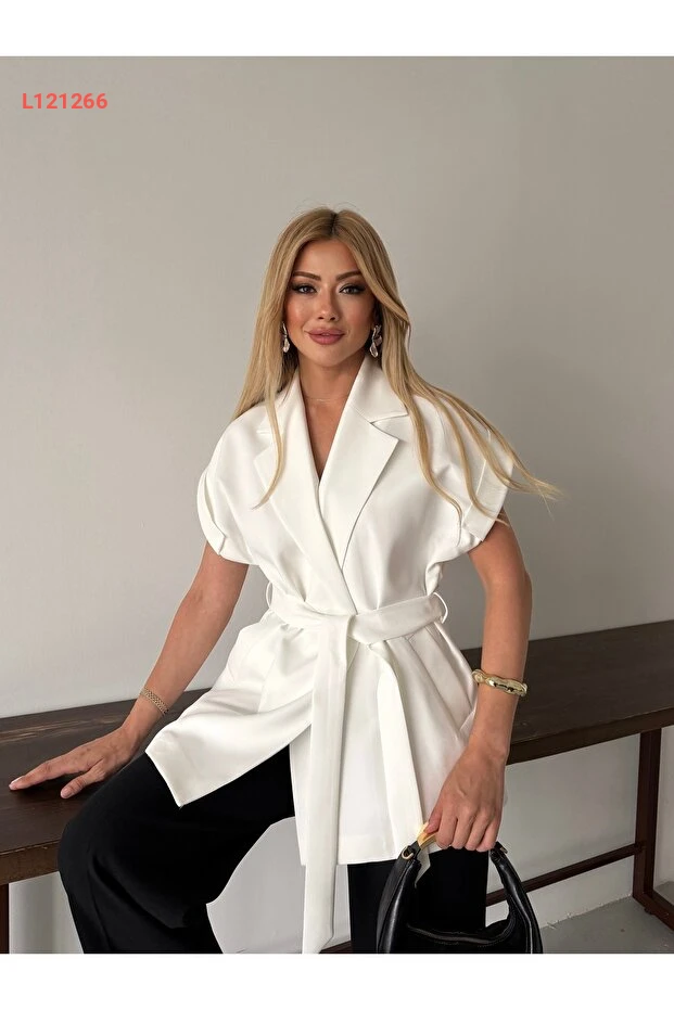 استمتع بمظهر أنيق ومريح مع سترة Nadrina ذات الأكمام القصيرة والتصميم الفضفاض. تتميز بحزام أنيق يضفي لمسة عصرية على أي إطلالة، مما يجعلها مثالية للتنسيق مع مختلف الملابس. مصنوعة من أقمشة ذات جودة عالية، تضمن لك الراحة والحرية في الحركة طوال اليوم.