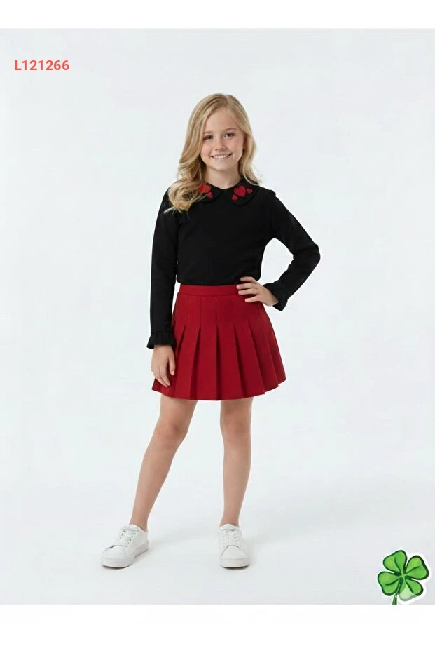 طقم فتيات مكون من قميص مزخرف وتنورة مطويّة من لَكِي كيدز