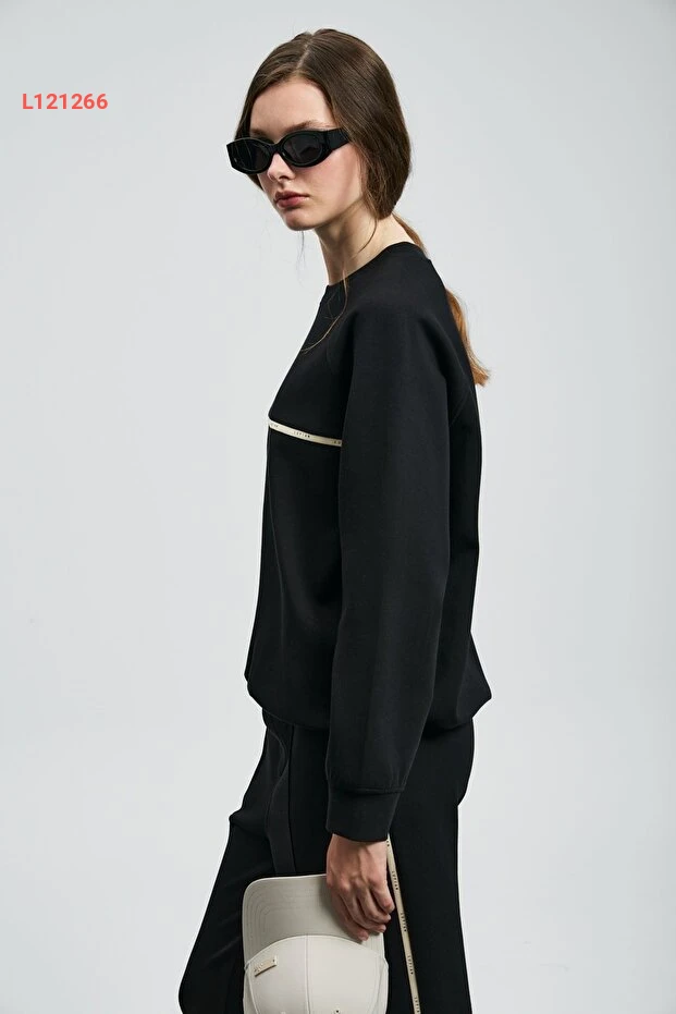 استمتعي بأناقة غير متكلفة مع سويت شيرت لوفيا بالشكل الكلاسيكي والأسود الجذاب. تمتاز بلطف قماشها القابل للتمدد، مما يوفر راحة مثالية طوال اليوم. أضيفي لمسة عصرية لمظهرك اليومي مع هذا التصميم الأنيق الذي يناسب كل المناسبات.