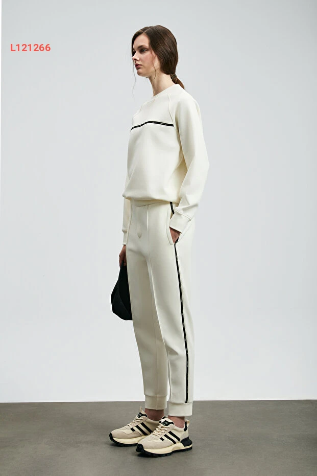 سروال نسائي رياضي محبوك من لوفيان باللون الأبيض الكريمي