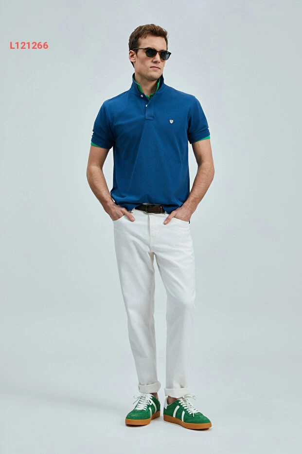 تيشيرت بولو قطن ذكي للرجال من لوفيان لون أزرق داكن