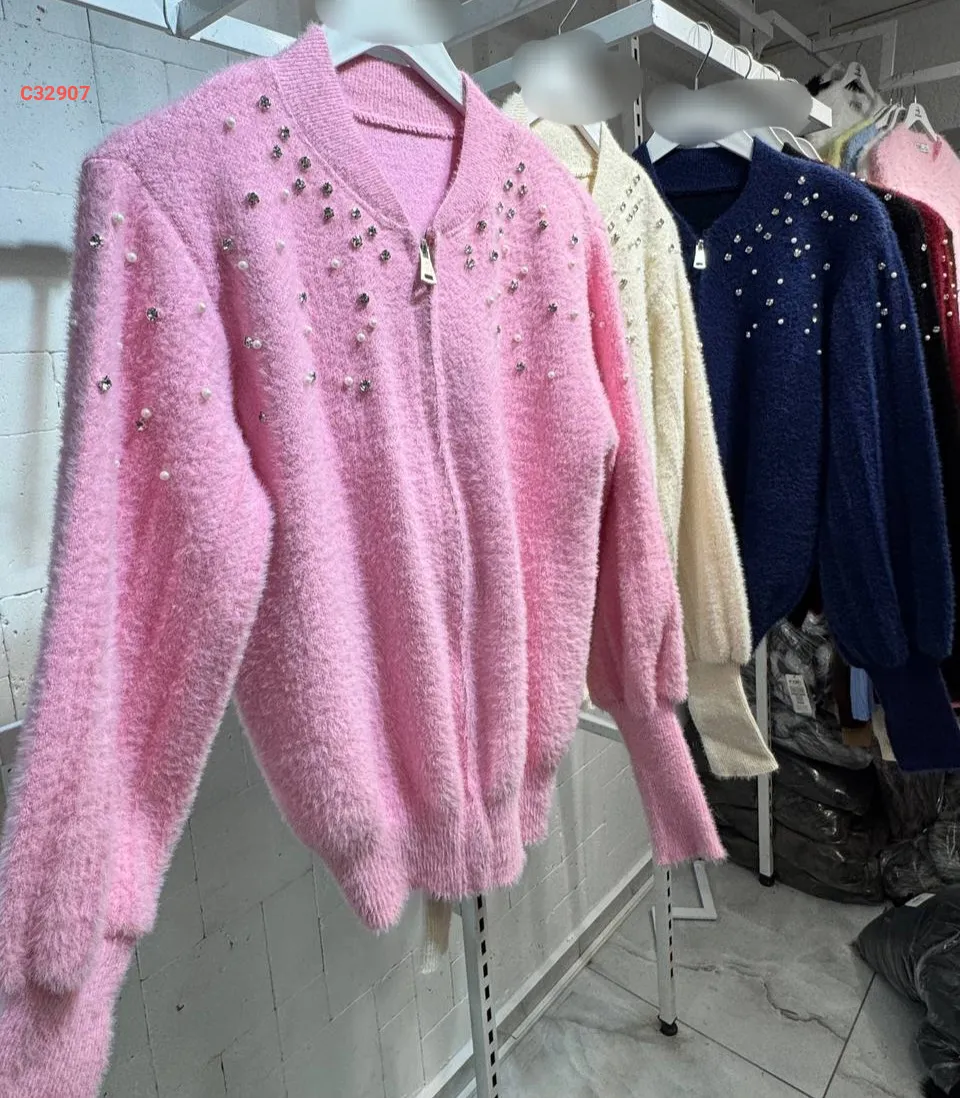 جاكيت تريكو سحاب مزين لولو وأحجار