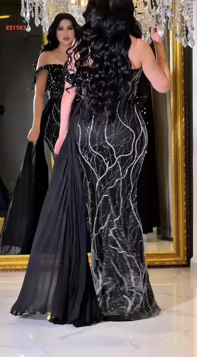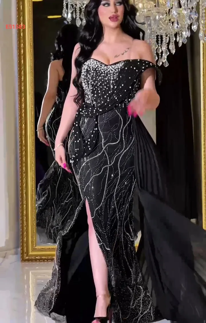فستان سهرة مطرز لولو وأحجار بشاحط