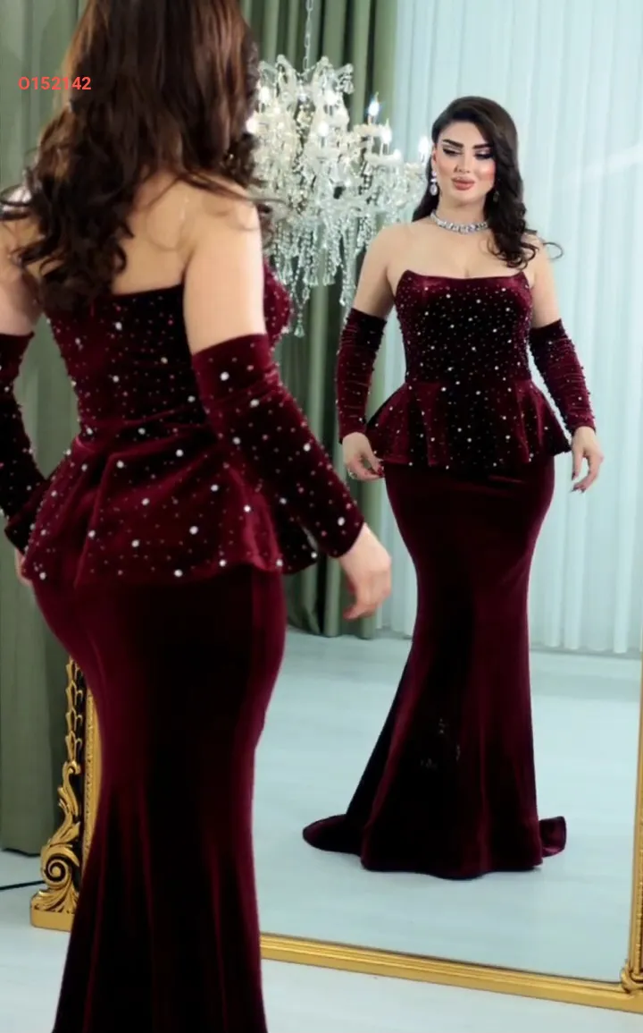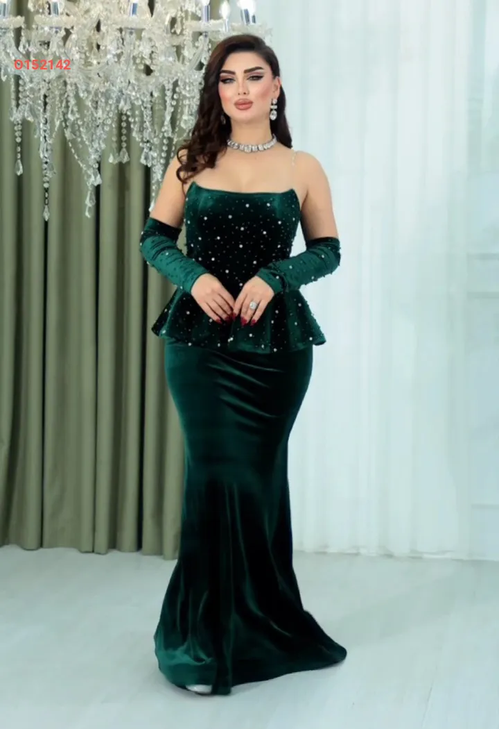 فستان سهرة مخمل cut مزبن لولو وأحجار