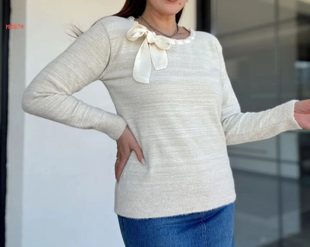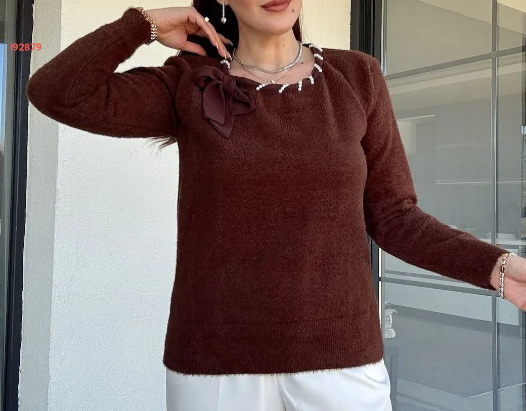 كنزة تريكو مزينة لولو عالقبة وفيونكة