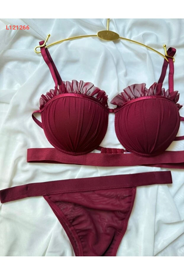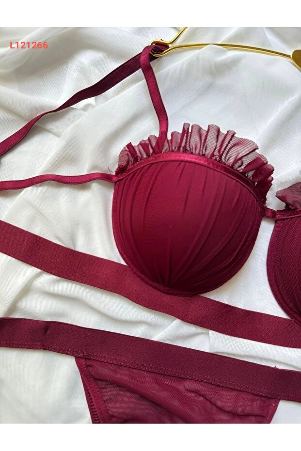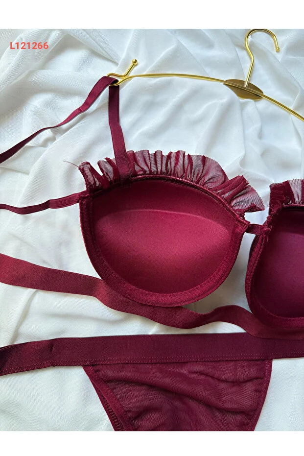 مجموعة حمالة صدر وسروال دانتيل بورجوندي بوردة - ملابس داخلية نسائية