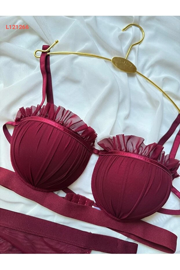 استمتعي بأناقة لا تضاهى مع مجموعة Lunary Bordo Dantel Balenli، حيث يجمع بين الرومانسية والراحة في قطعة واحدة. صُممت هذه المجموعة من السوتيانات والسراويل الداخلية لتعانق جسدك برقة، مع تفاصيل الدانتيل الفاخرة التي تضفي لمسة من الأنوثة الساحرة. اجعلي كل يوم مميزًا بلمسة من الفخامة والثقة.