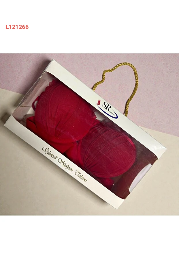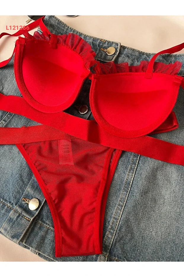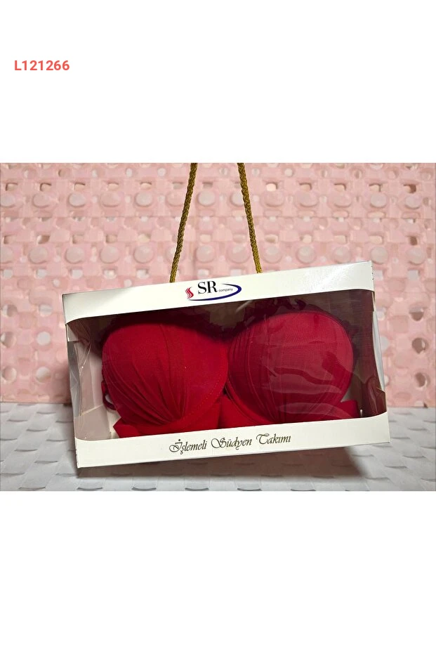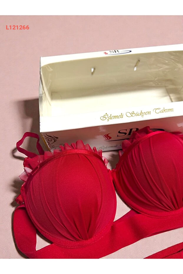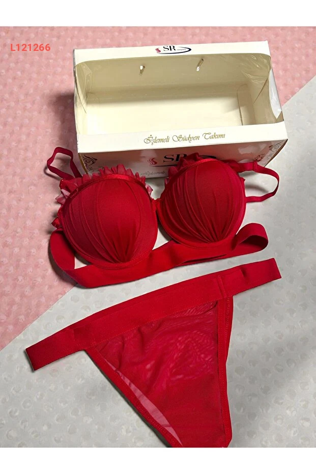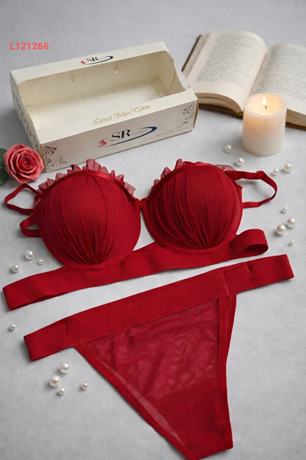 مجموعة صدرية وسروال دانتيل أحمر مع دعم بالون من لونااري - ملابس داخلية نسائية مع صندوق