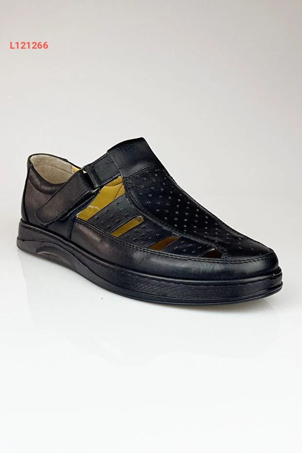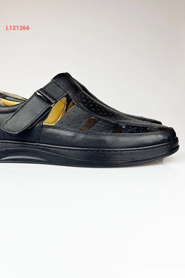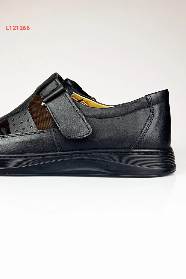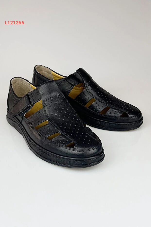 صندل الرجال اليومي الفاخر من الجلد الطبيعي باللون الأسود