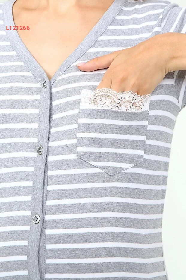 استمتعي بأناقتك وراحتك مع فستان الحمل Luvmabelly Myra9720! يتميز بتصميمه الأنيق مع الدانتيل الرقيق والجيوب العملية، مما يجعله خيارًا مثاليًا لمظهرك اليومي. ألوانه الرمادية المخططة تجعلكِ تبدين رائعة ومريحة في كل مناسبة، سواء كنتِ في المنزل أو خارجه.