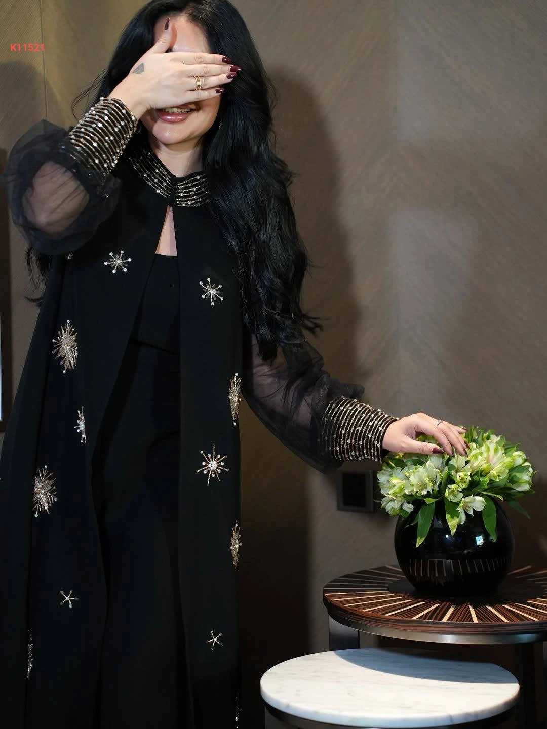 طقم سهرة جاكيت مشكوك أكمام شيفون فاخر