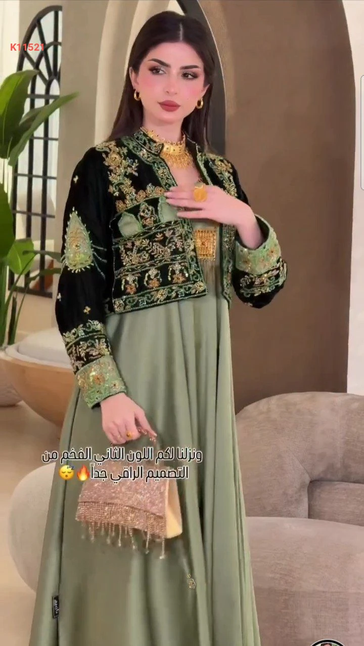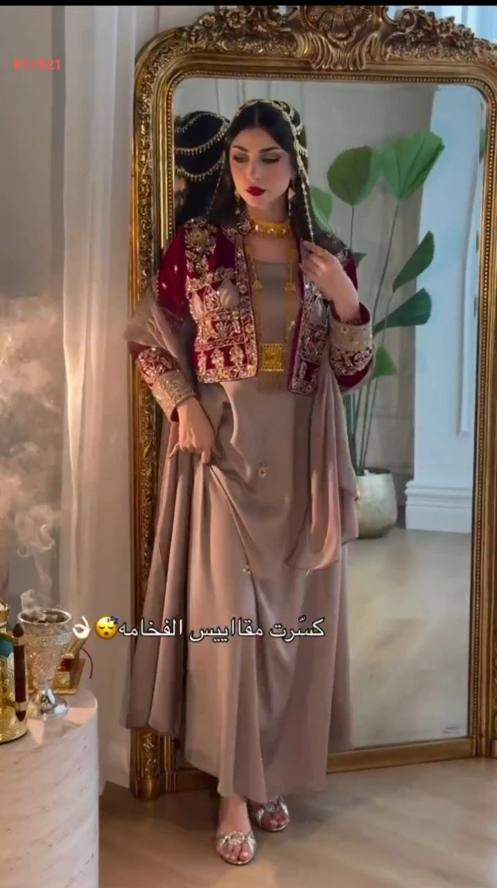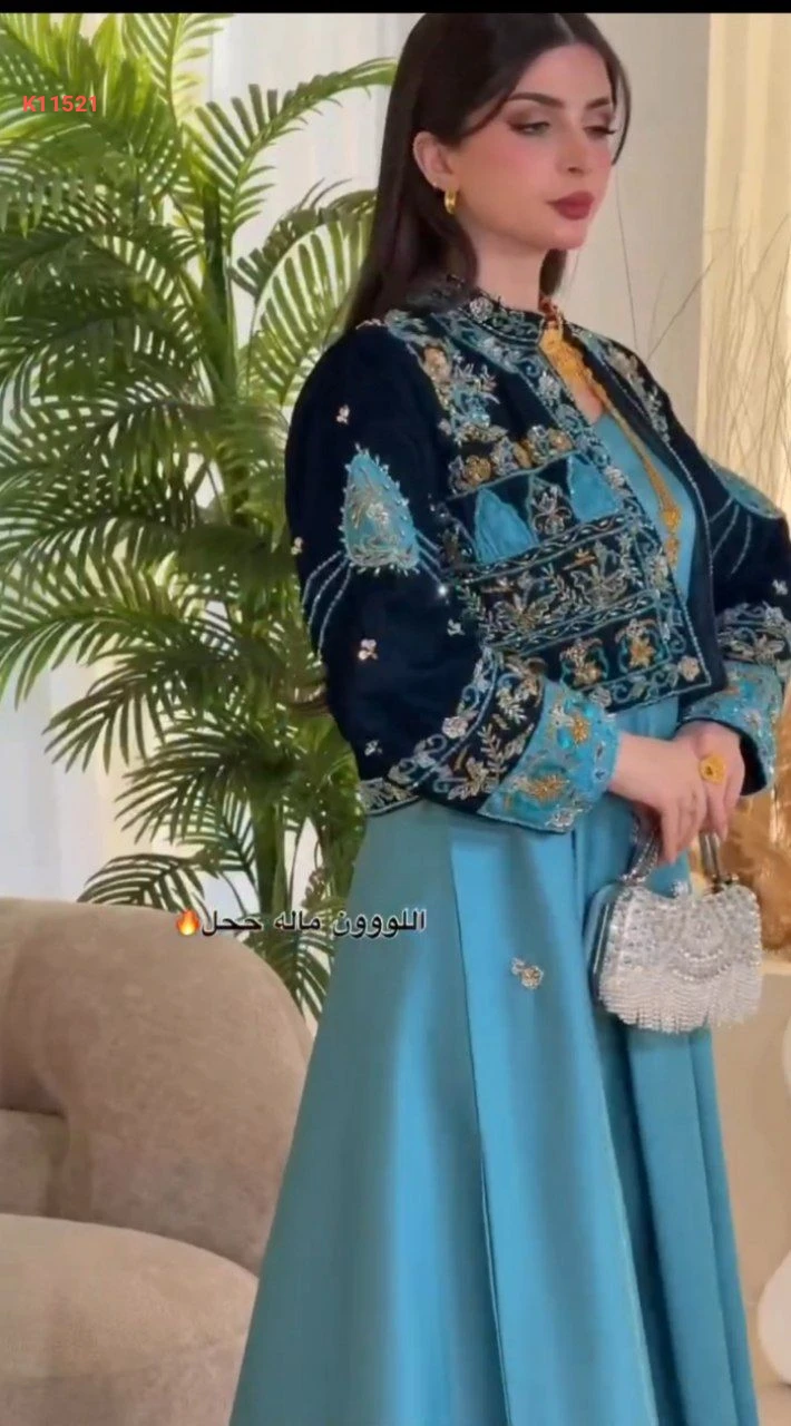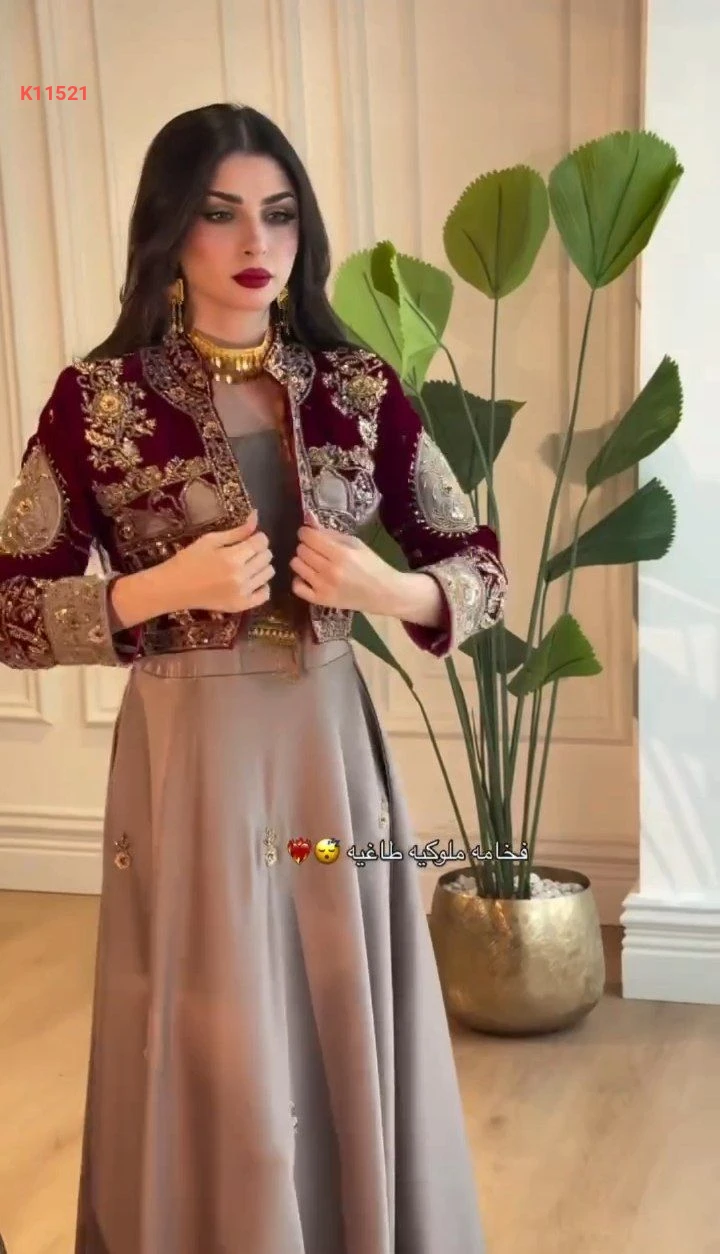 طقم فستان حفر مع بوليرو مرصع فاخر