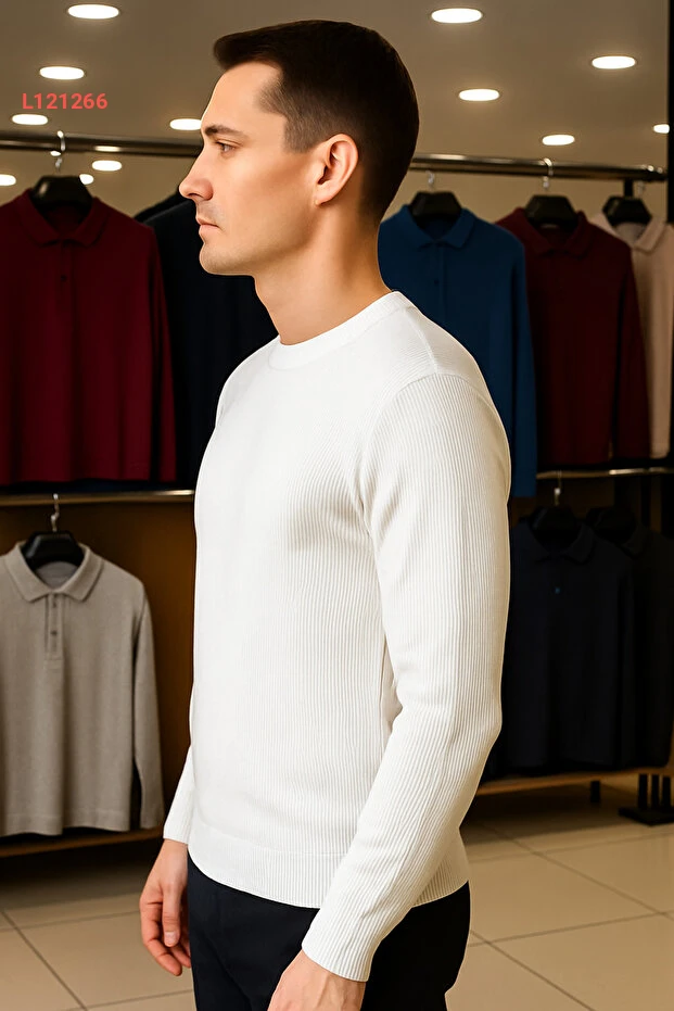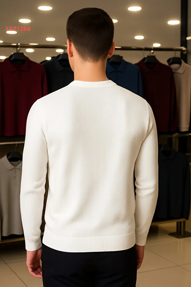 سويت شيرت شتوي رجالي بياقة دائرية مصمم بخطوط بيضاء