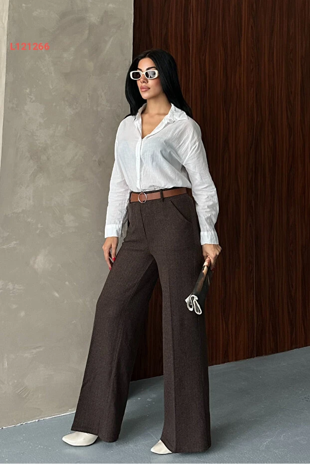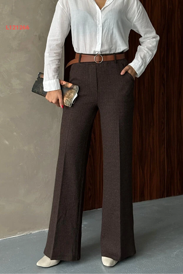 بنطال بالازو نسائي مزخرف بجيوب وحزام من ماركة ماشارييل