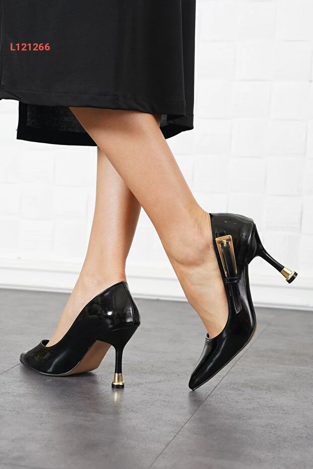 حذاء مدو باي مادوكس النسائي بكعب عالي مع إبزيم - أسود لامع