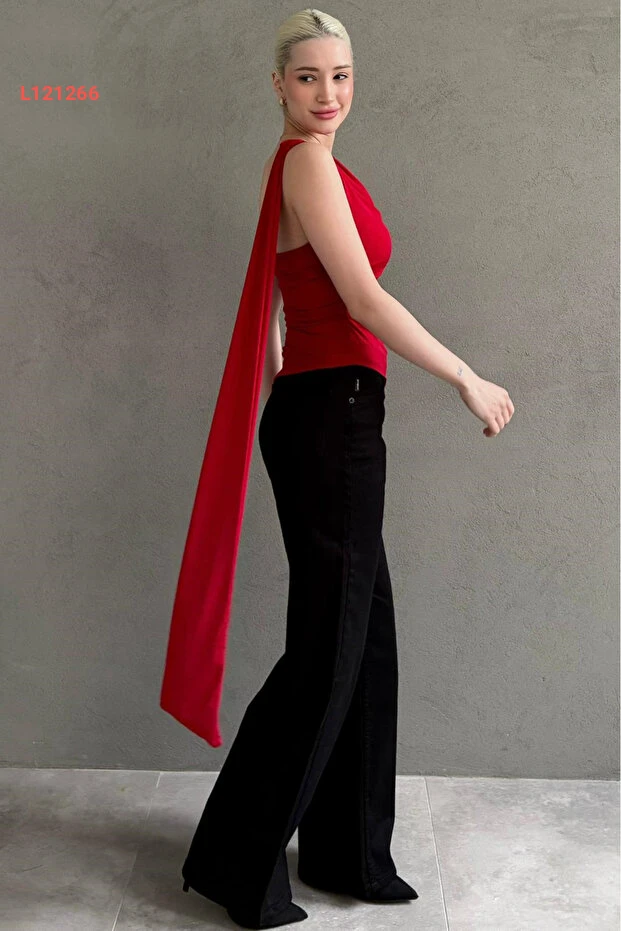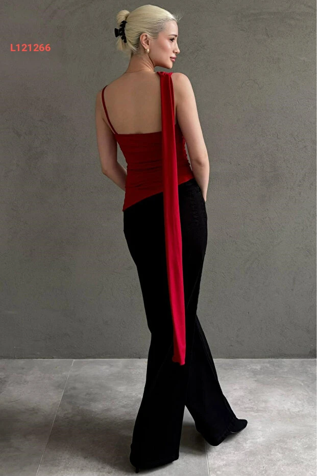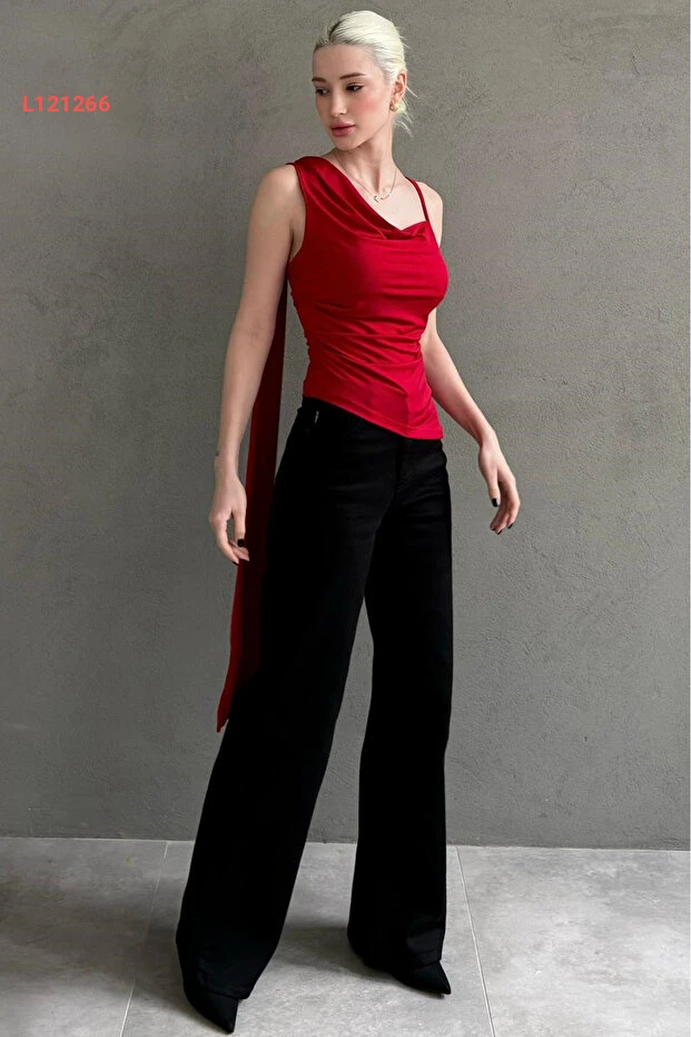 بلوزة نسائية أنيقة ذات ياقة داج ووشاح باللون الأحمر من مادميكس MG2650