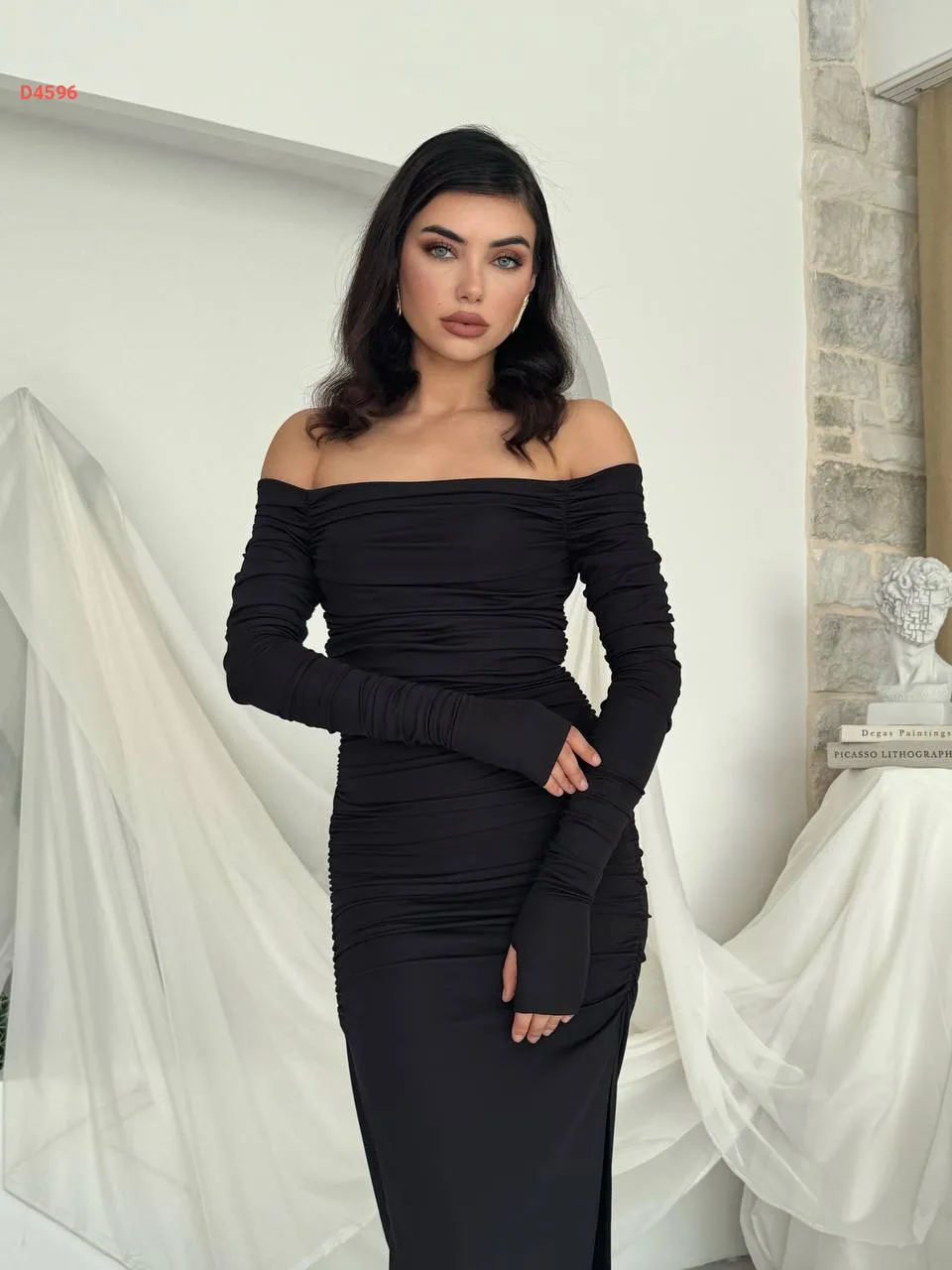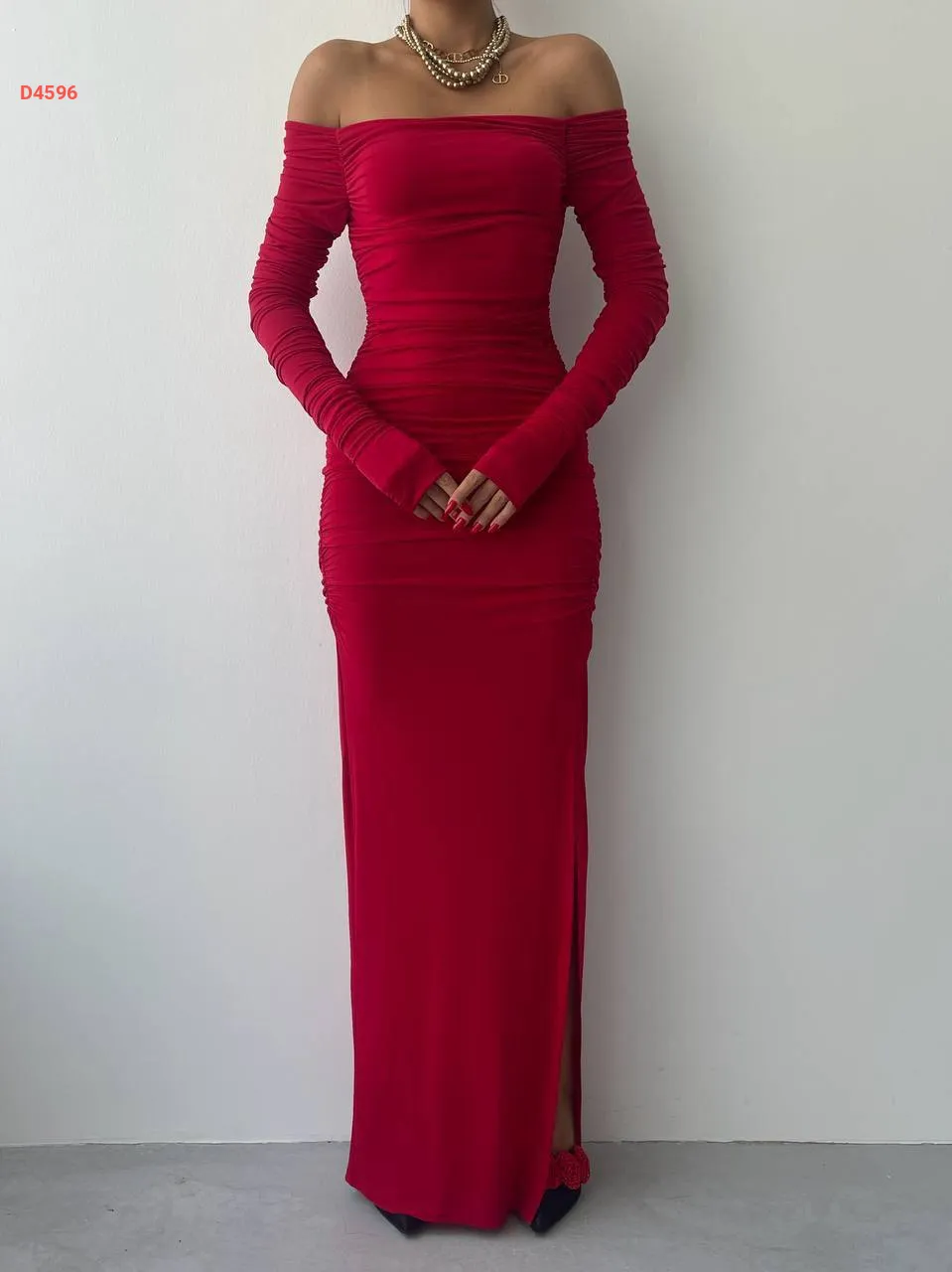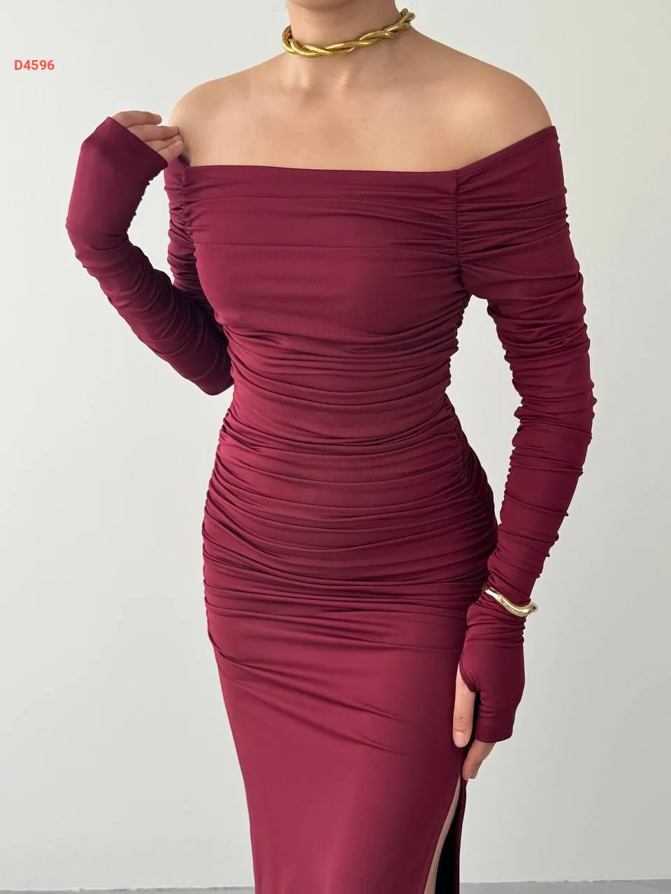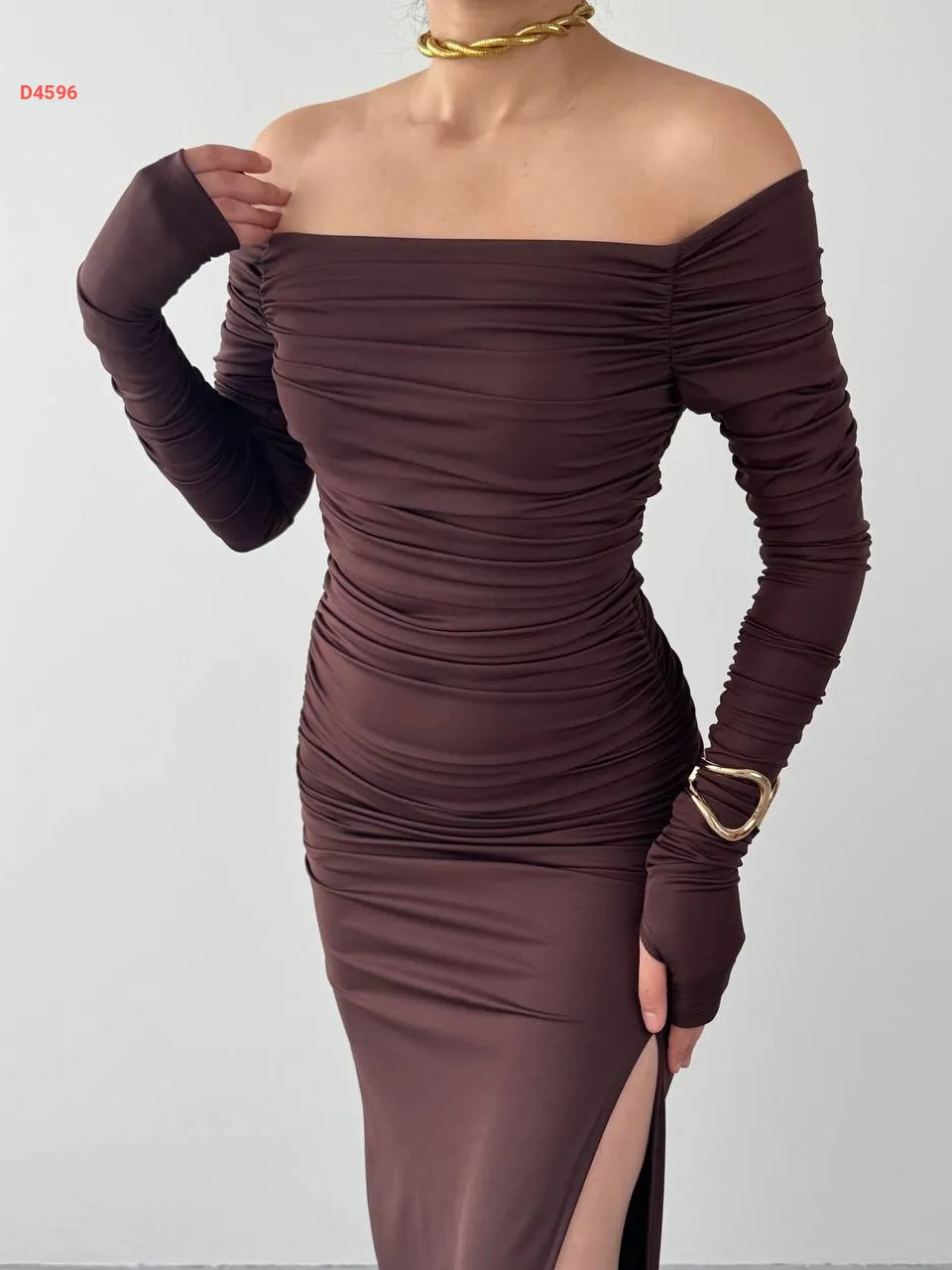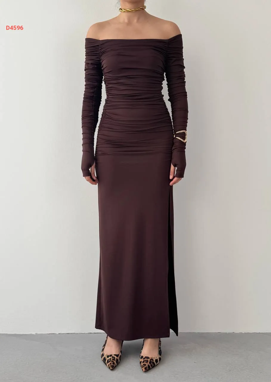 فستان طويل مجمع بياقة مادونا