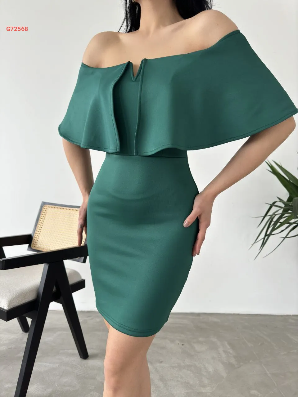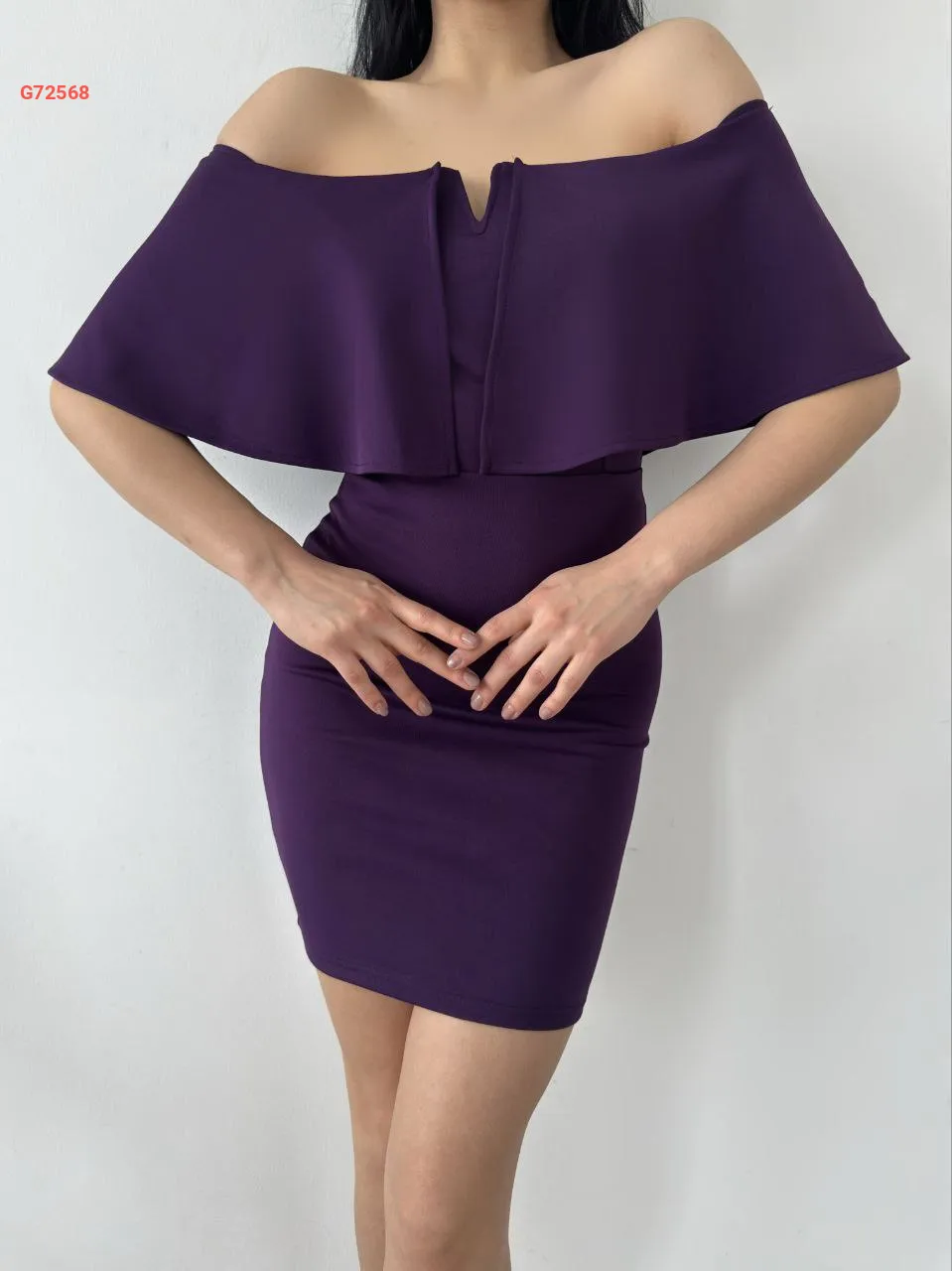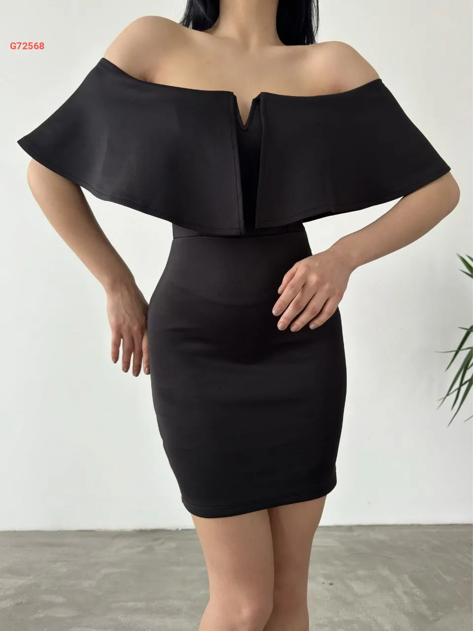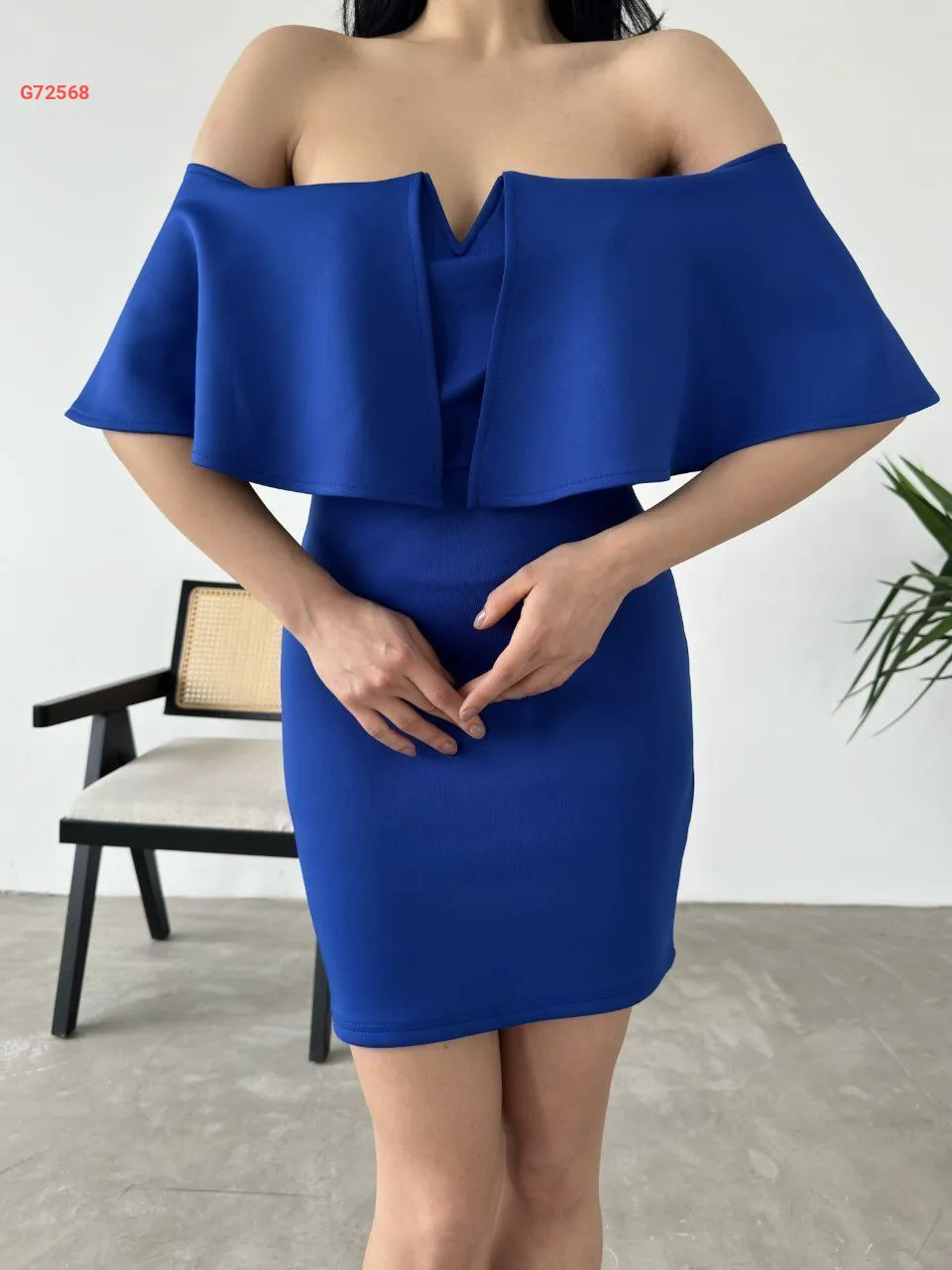 فستان قصير سكوبا بياقة مادونا
