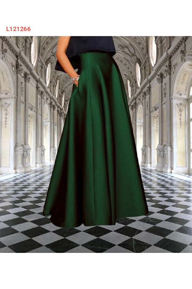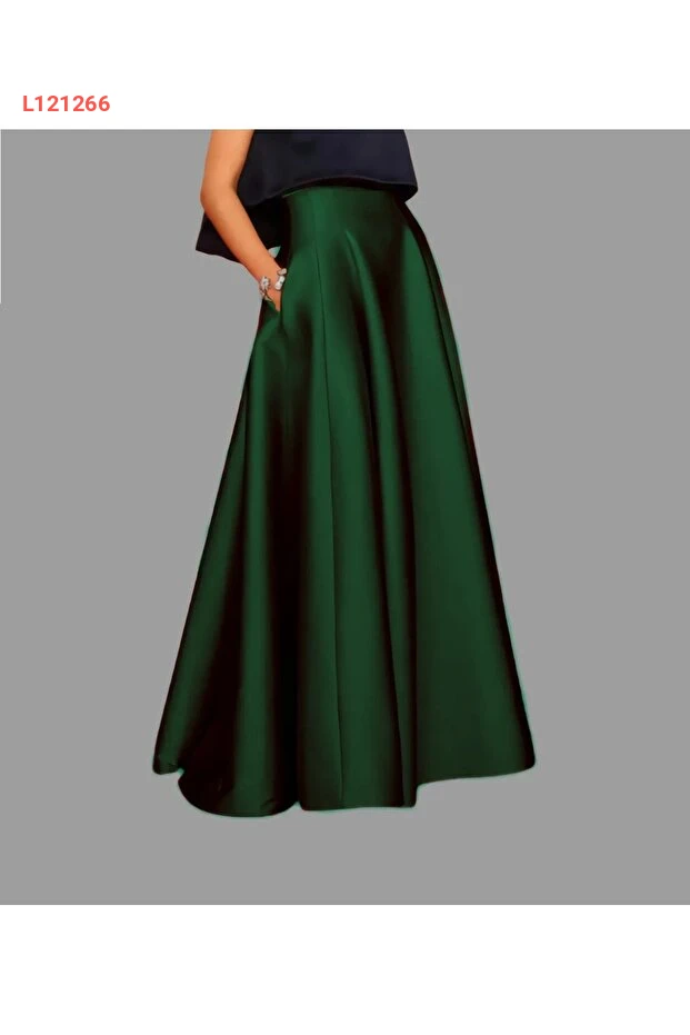 تنورة ساتان بليسيه عالية الخصر جيب زمرد من ماديا بوتيك