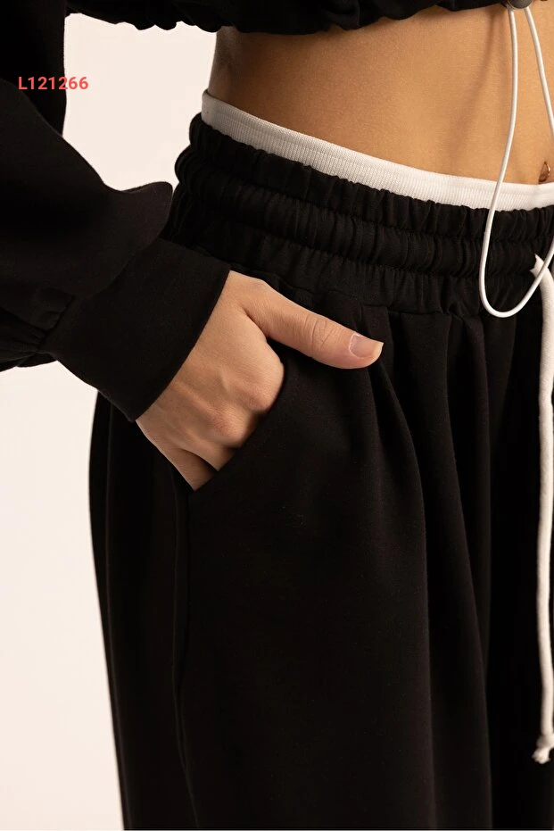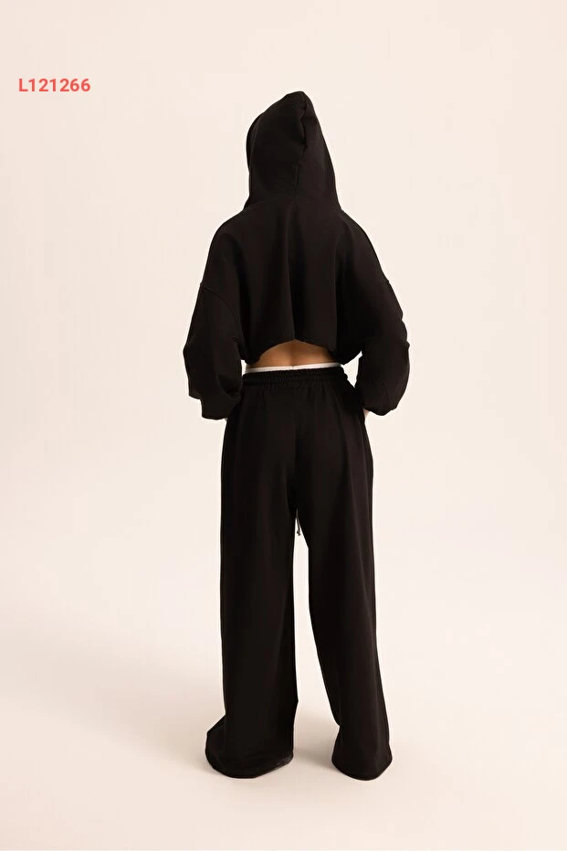 طقم هودي كروب أسود بتفاصيل أولين من ماي ستوديوز