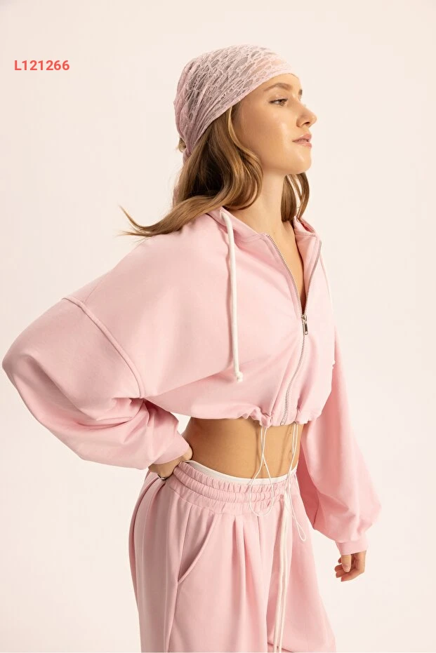 طقم هودي قصير بكمية مميزة من MAI STUDIOS CO. بلون وردي