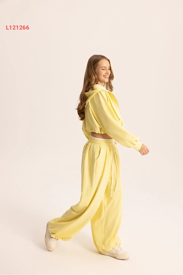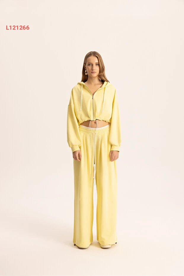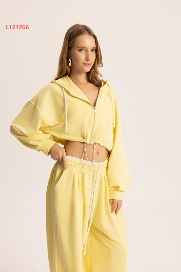 طقم أزياء كروپ بقلنسوة صفراء من ماي ستوديوز