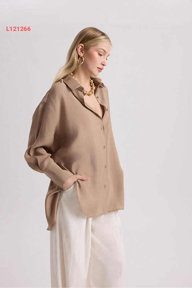 استمتع بأناقة غير تقليدية مع قميص MAI STUDIOS CO. Zaria Açık Vizon Oversize. يأتي بلون البيج الفاتح وتصميم فضفاض يجمع بين الراحة والحداثة، مما يجعله مثاليًا لجميع المناسبات. أضف لمسة عصرية إلى إطلالتك اليومية مع هذا القميص الذي يضمن لك مظهراً جذاباً ومتميزاً.