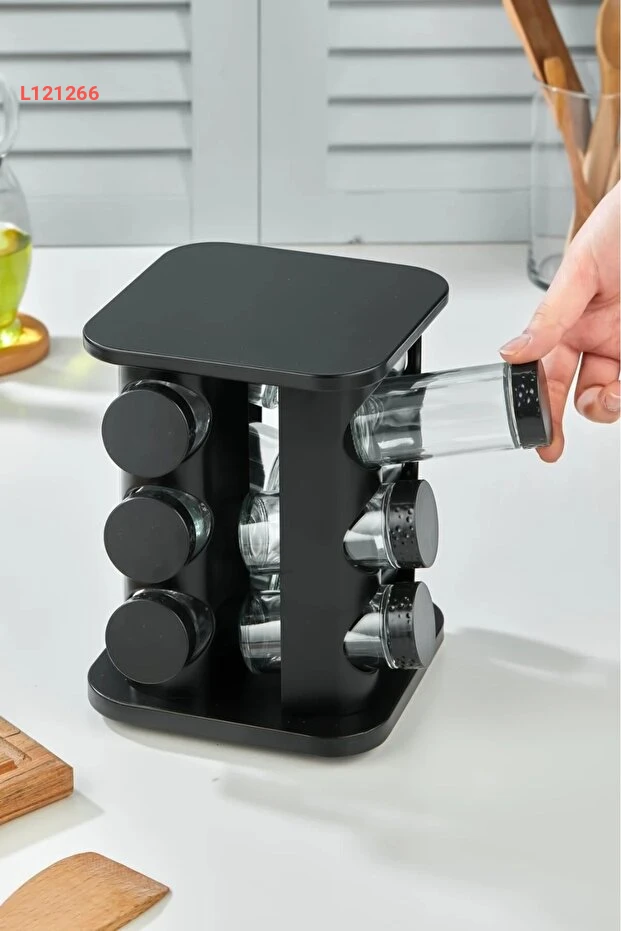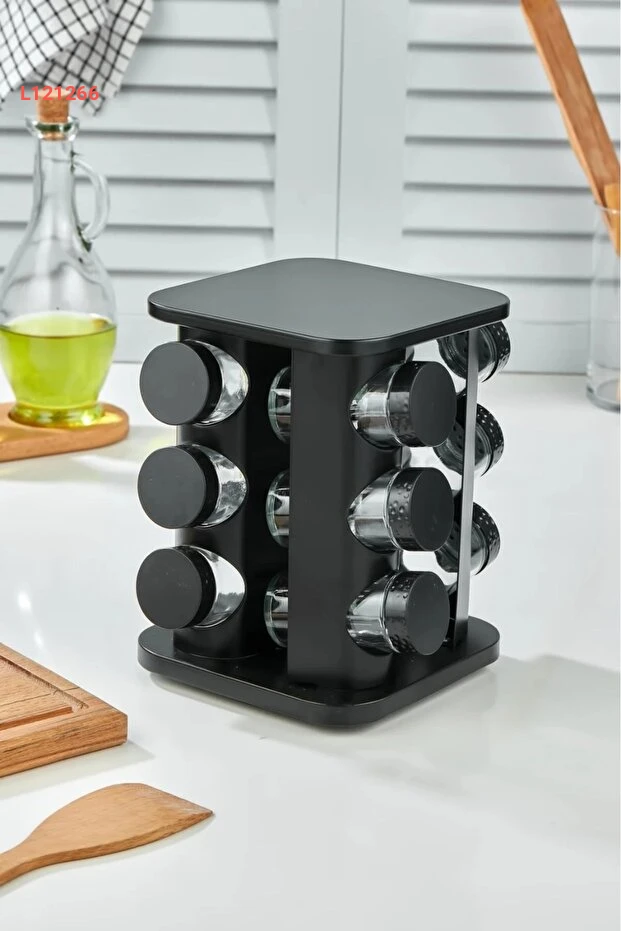 استمتع بتنظيم مطبخك مع طقم البهارات الزجاجي MAKRİ HOME، الذي يأتي مع قاعدة دائرية من الستانلس ستيل لضمان دوران سلس وسهل الوصول إلى جميع نكهاتك المفضلة. مع 12 قطعة ذات تصميم مربع أنيق بلون أسود جذاب، يضيف هذا الطقم لمسة عصرية لمطبخك بينما يحتفظ بمحتوياته طازجة وجاهزة للاستخدام في أي وقت.