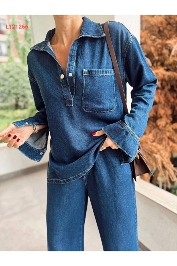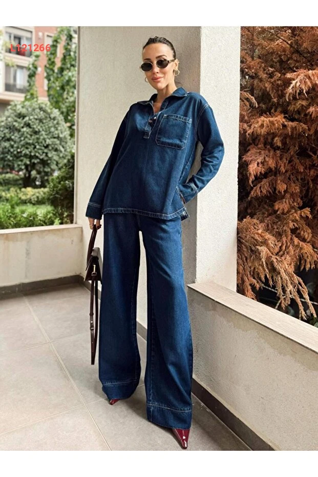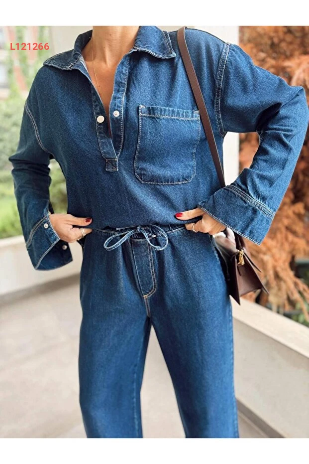 طقم نسائي من الدنيم الأزرق - قميص وبنطال من مالديا شوب