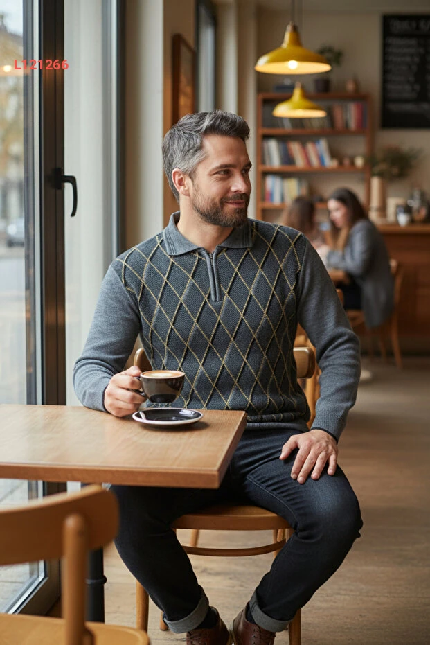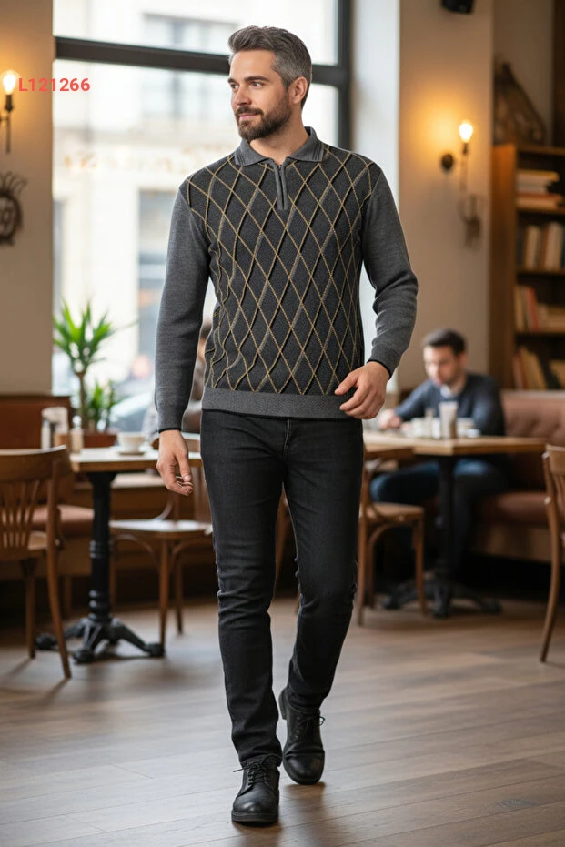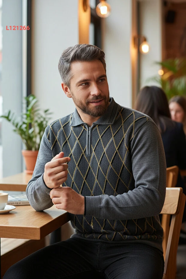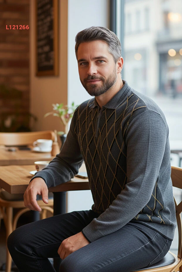 استمتع بالأناقة والراحة مع سترة بولو كمالي الرمادية، المصنوعة من قماش مقاوم للتكون الزغب، مما يضمن لك مظهراً دائماً أنيقاً. بتصميم قياسي وقصة تناسب الجسم، تضيف هذه السترة لمسة عصرية إلى إطلالتك اليومية، بينما توفر لك الدفء والراحة المثالية في مختلف الأوقات.