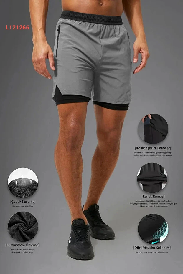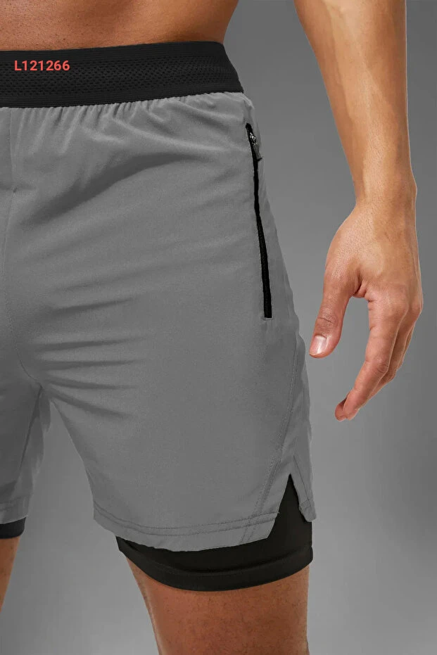 شورت رياضي مدمج للرجال والنساء مع جيوب سرية وحزام مرن