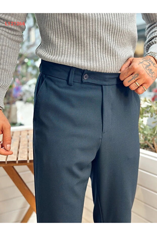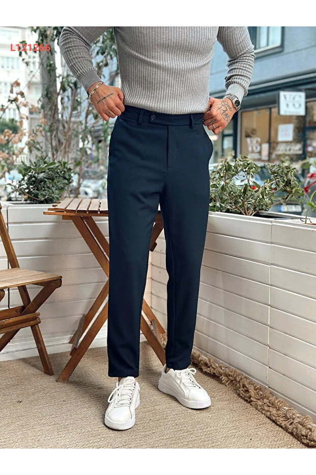 سروال إيطالي أنيق بتفاصيل الحزام - لون أزرق داكن من مانش كوليكشن