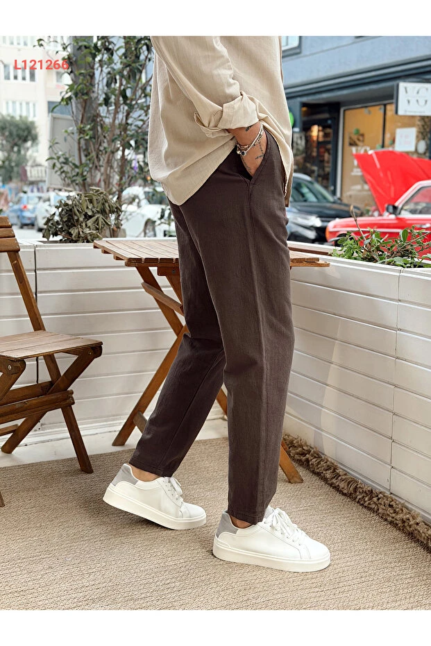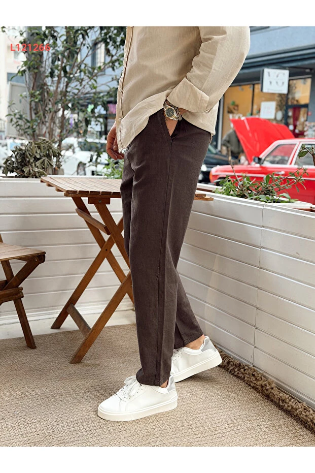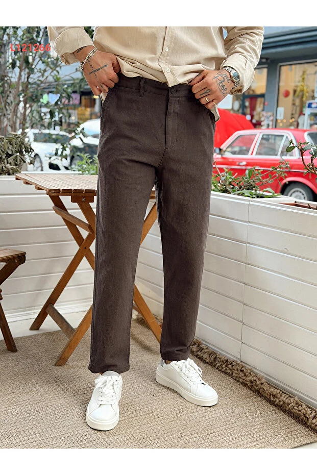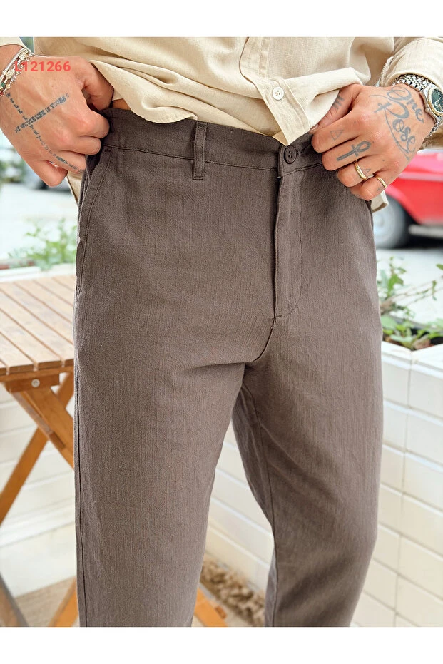 اكتشف أناقتك مع بنطال مانش الإيطالي المصنوع من الكتان، بتصميمه العصري ولونه البني الجذاب. انعم بالراحة والتهوية الفائقة خلال جميع مناسباتك، واجعل كل إطلالة لك تبرز ذوقك الرفيع.
