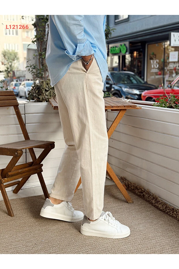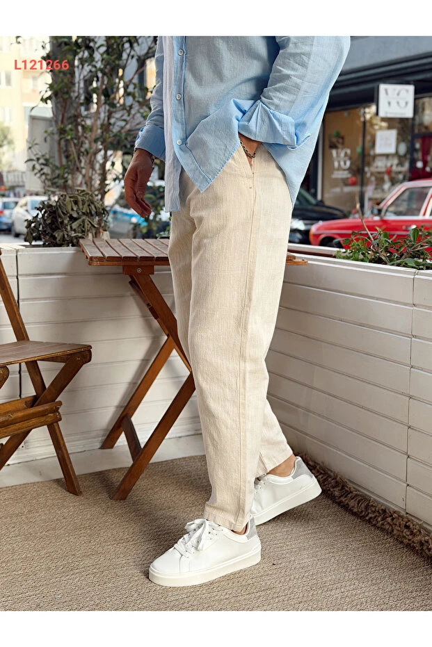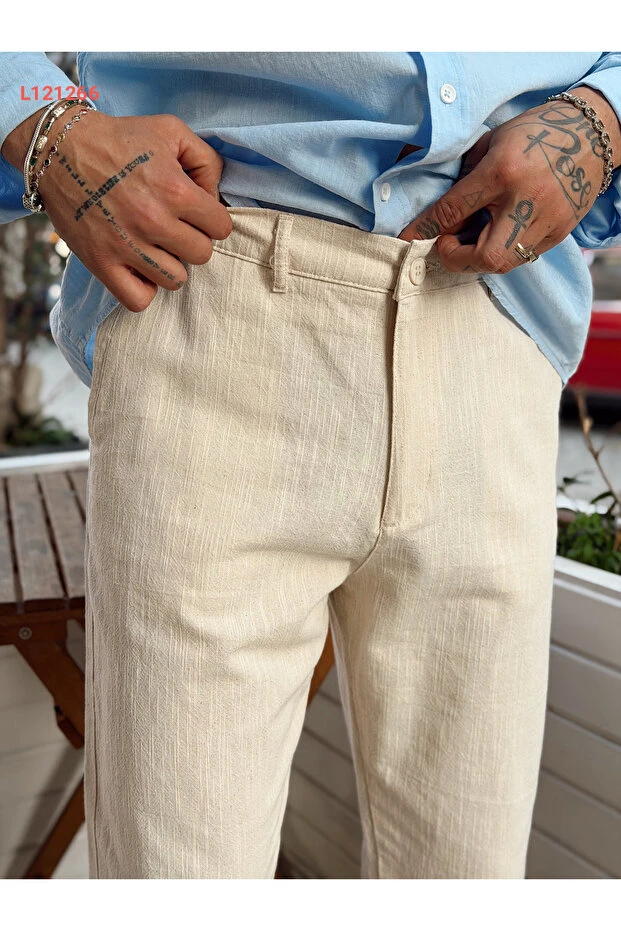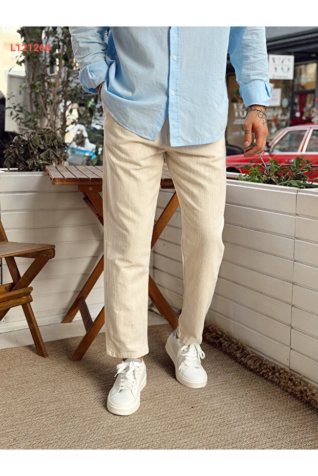 بنطلون كتان إيطالي مقصوص - لون كريمي من مانش كولكشن