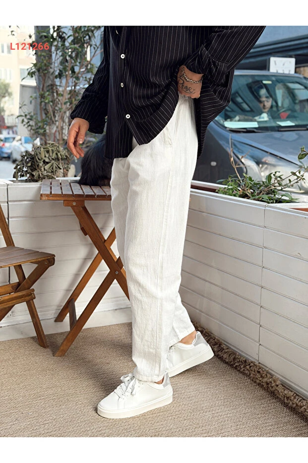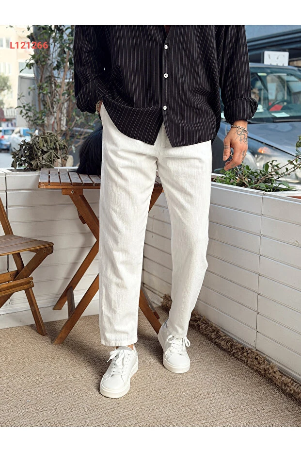 بنطال كتان إيطالي قصّة عصرية باللون الأبيض من مانش