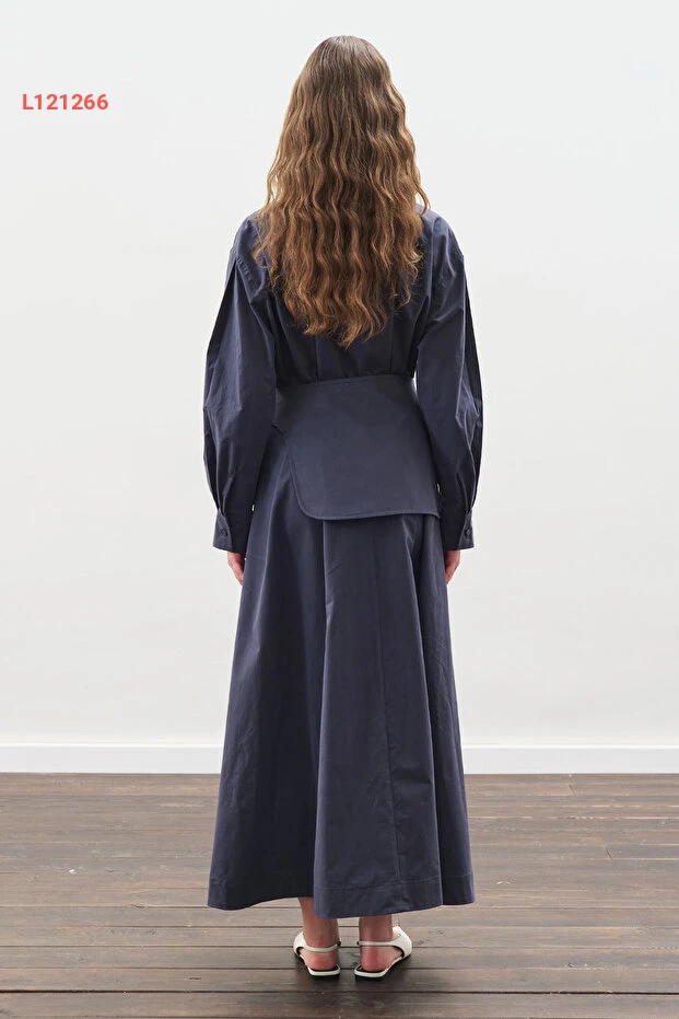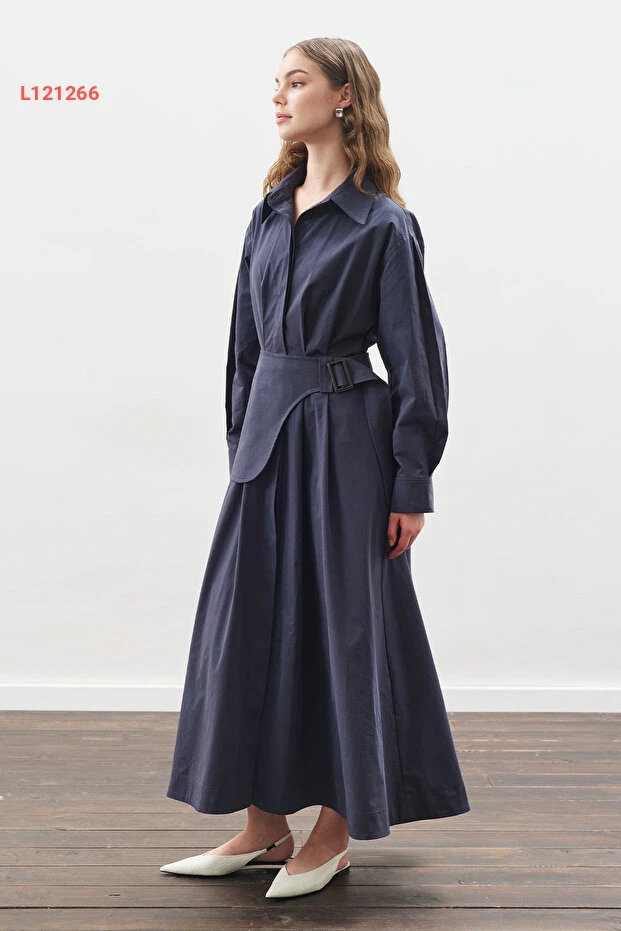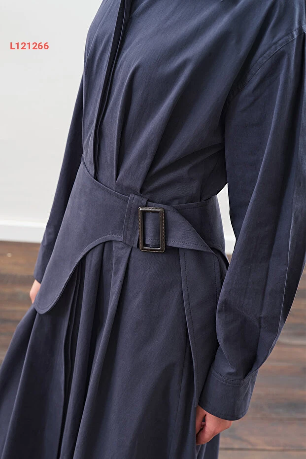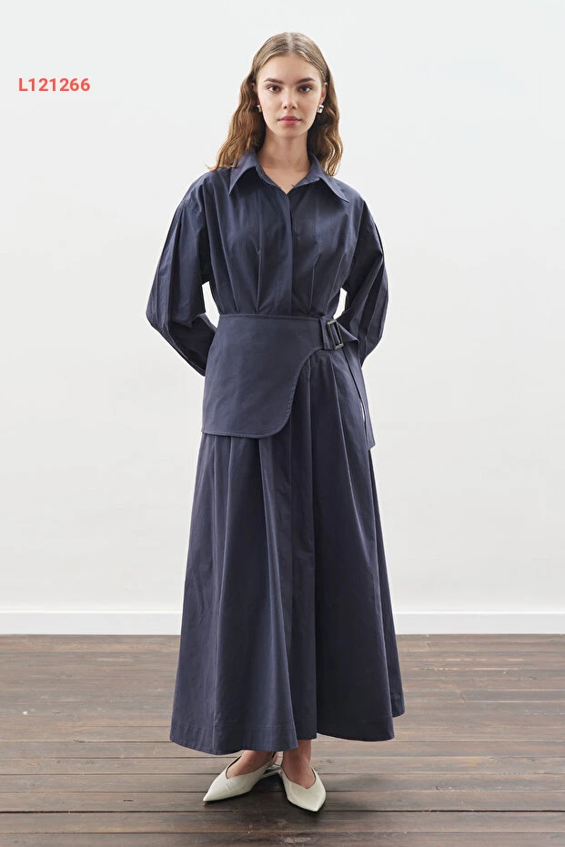 فستان مانوكَة كيمر بتفاصيل طيات بلون النيلي