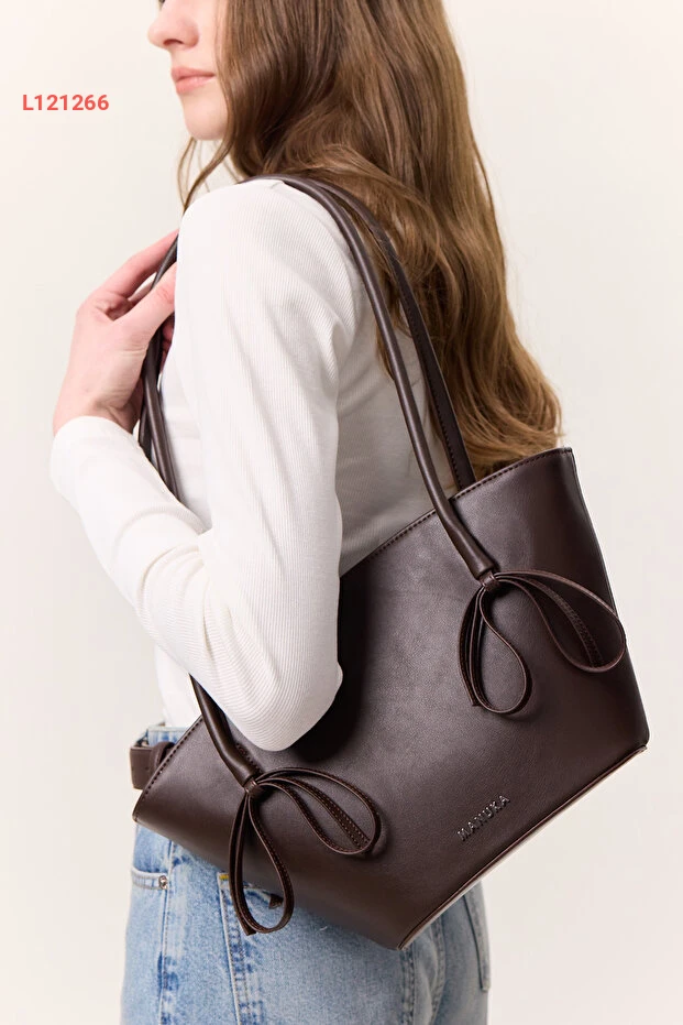 تألقي بالأناقة مع حقيبة Manuka Sandy الفيونكلية بلون القهوة الداكن، حيث تجمع بين التصميم العصري والجودة العالية. تُضفي تفاصيل الفيونكة لمسة من الرقي والتميّز، بينما توفر لك سعة مثالية لتنظيم أغراضك اليومية. ارتديها في أي مناسبة وأبرزي أنوثتك بكل ثقة!