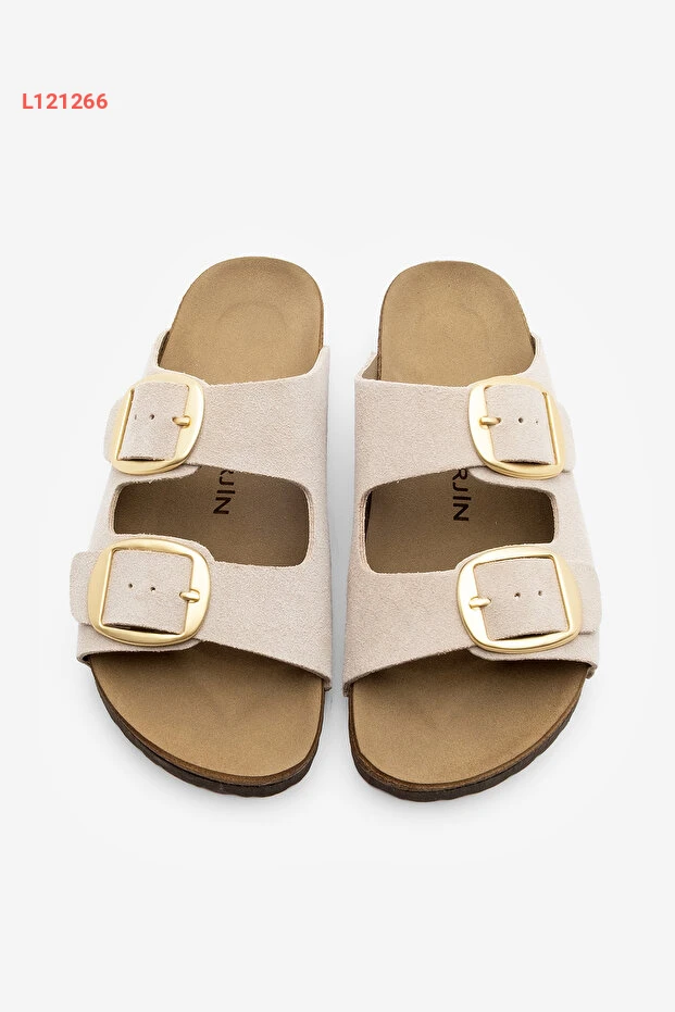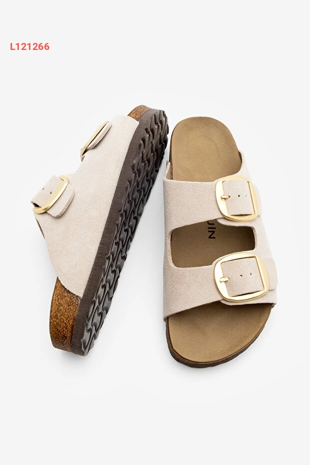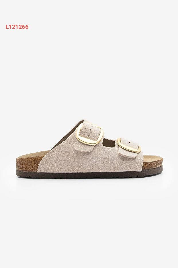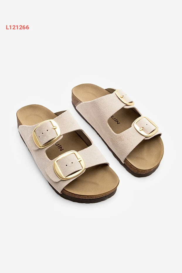 صندل يومي للنساء مصنوع من الجلد الطبيعي ذو شريطين مع قاعدة EVA - لون بيج بولي