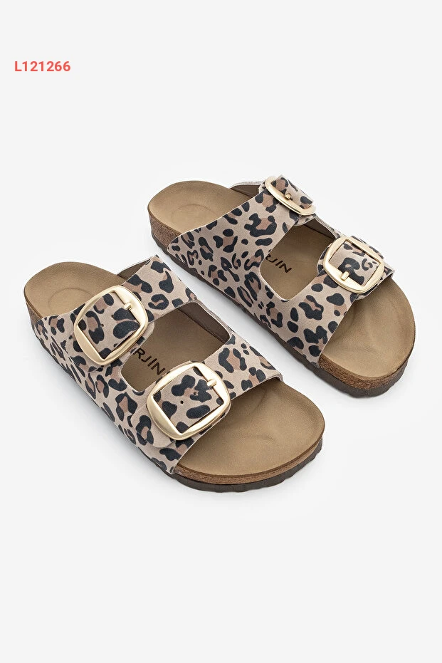 استمتعي بأناقة وراحة لا مثيل لهما مع صندل "مارجين" النسائي من الجلد الحقيقي. يتميز بتصميمه الأنيق ذي الشريحتين وجزءه العلوي بنمط الفهد العصري، بينما يوفر لكِ قاعدة EVA خفيفة الوزن لراحة القدمين طوال اليوم. مثالي للاستمتاع بجولاتك اليومية أو للاسترخاء في المنزل.