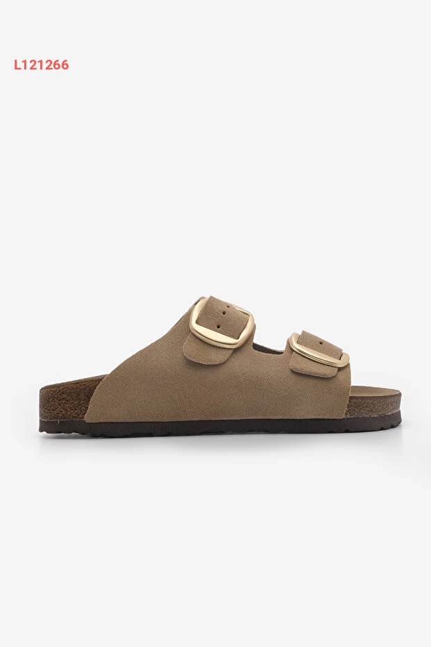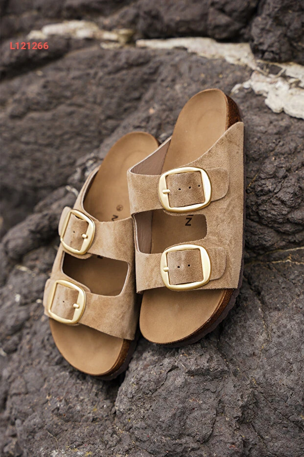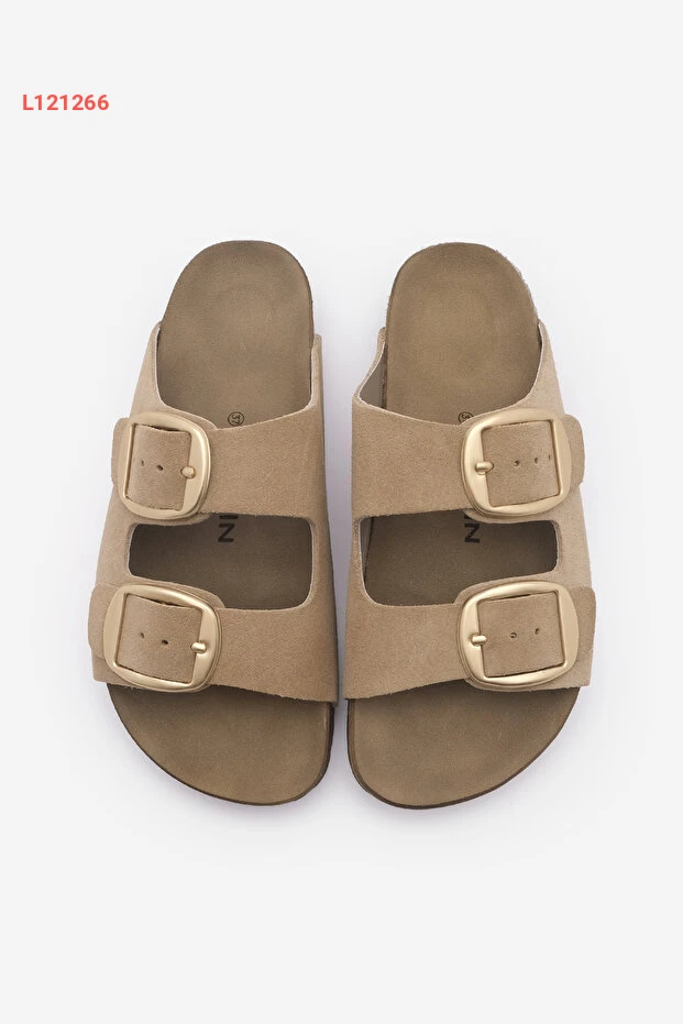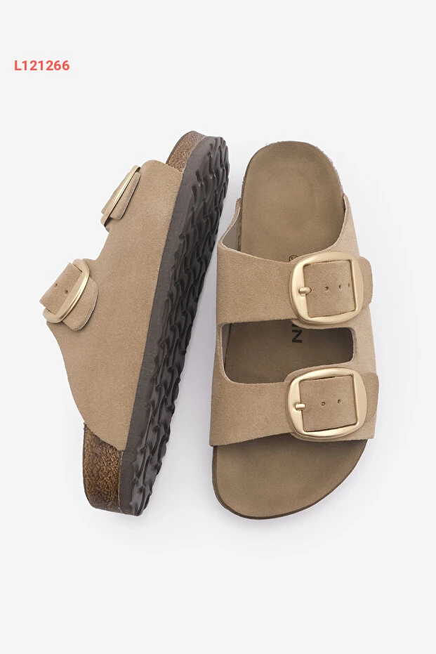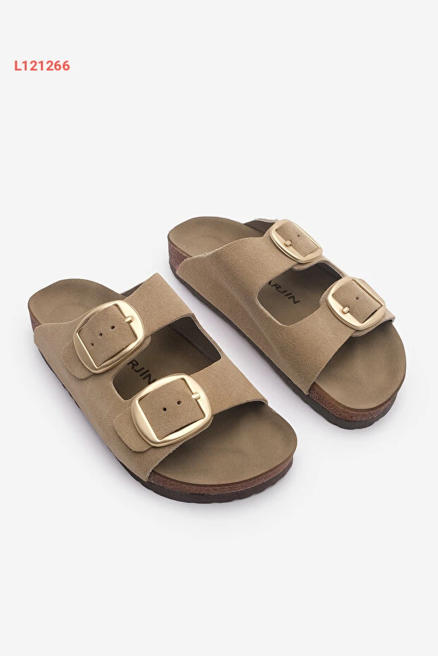 صندل نسائي من مارجن، جلد طبيعي، بنمط مزدوج مع قاعدة إيفا - لون كاميلي