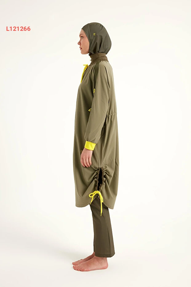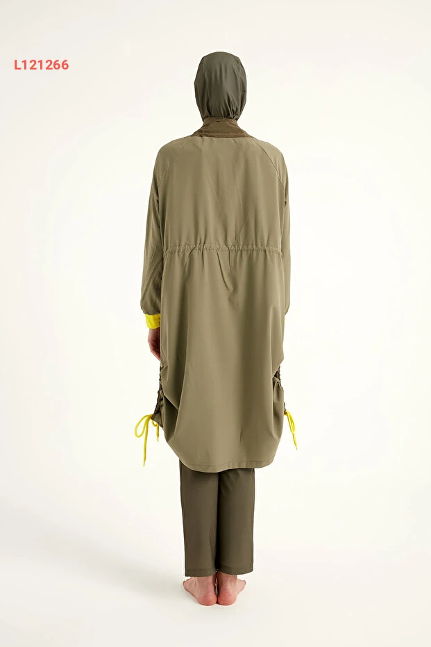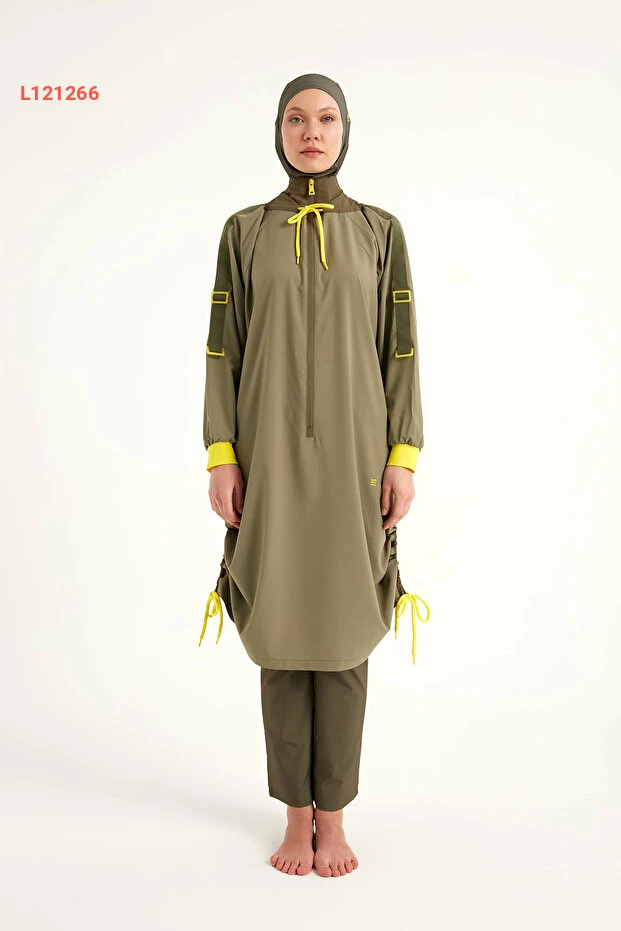 استمتع بالراحة والأناقة مع مايو "Marina Haki Tam Kapalı Tesettür M2524". يتميز هذه المايو بكونه مضادًا للماء ومصنوع من مواد عالية الجودة تضمن لك الحرية في الحركة. بالإضافة إلى أناقته التصميمية، يأتي بأكمام مانشيت مريحة تقدم لك تغطية كاملة مع لمسة عصرية.