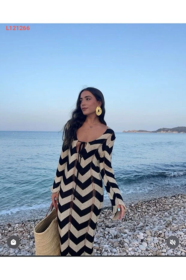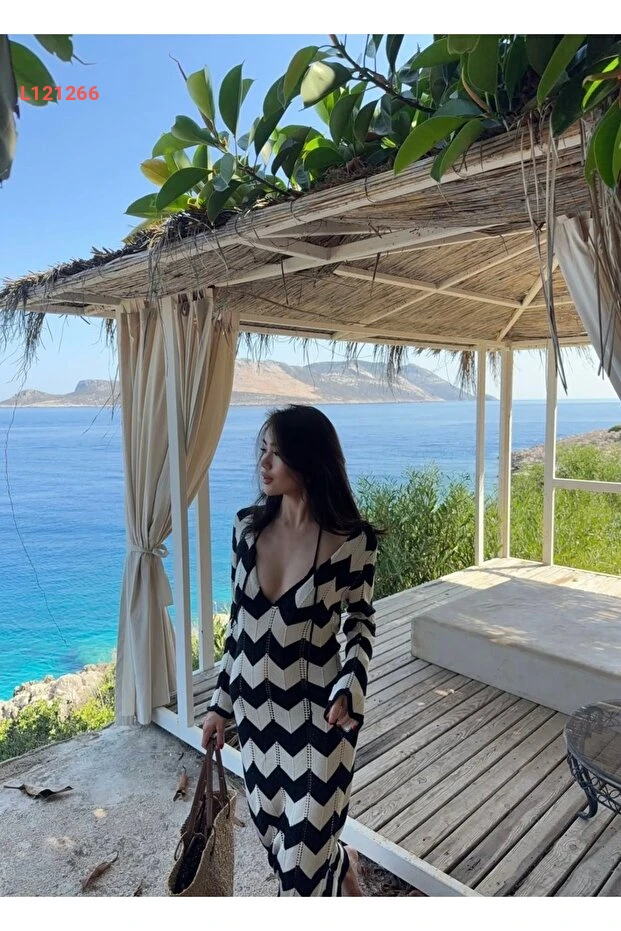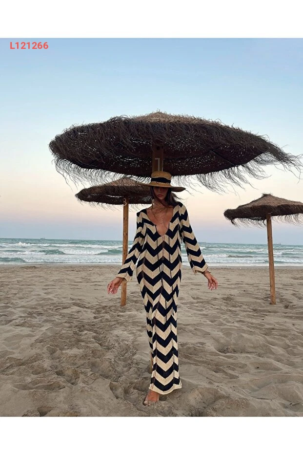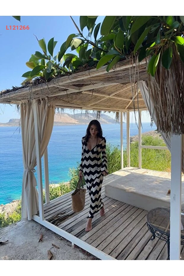 اجذبي الأنظار مع فستان مارلين الطويل بتصميمه المتعرج الجميل! يتميز بياقة على شكل حرف V وقصته الفضفاضة، مما يجعله الخيار المثالي لموسم الصيف على الشاطئ أو في أوقات الاسترخاء. استمتعي بأناقتك المطلقة بفضل الخامة المريحة التي توفر لك حرية الحركة وتضفي لمسة من الأناقة البوهيمية على إطلالتك.