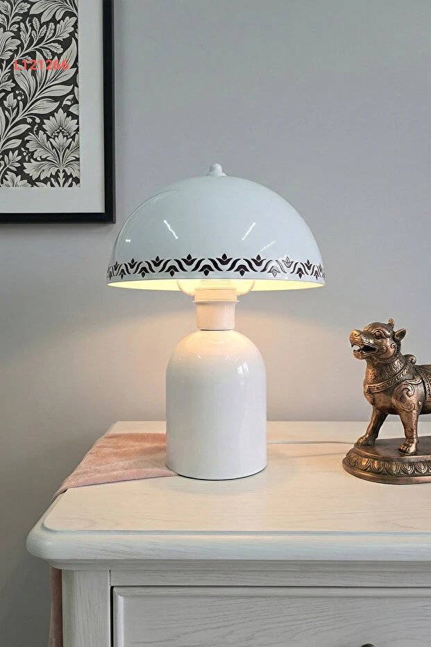 أباجورة ماريان لونا بتصميم توليب - قاعدة معدنية بيضاء - 25 سم - إضاءة غرفة المعيشة - مصباح طاولة زخرفي