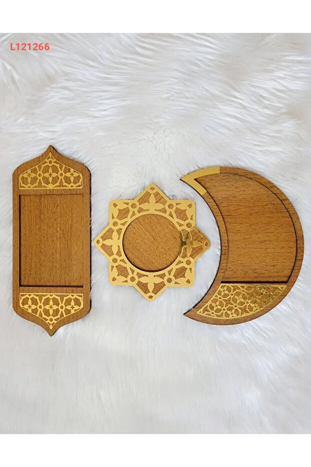 صحن تقديم ثلاثي بتصميم مميز - لون جوزي - زينة رمضان مرحبًا بك